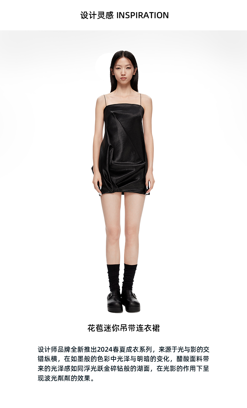 lost in echo2024春季新款设计师品牌手工立裁花苞迷你吊带连衣裙