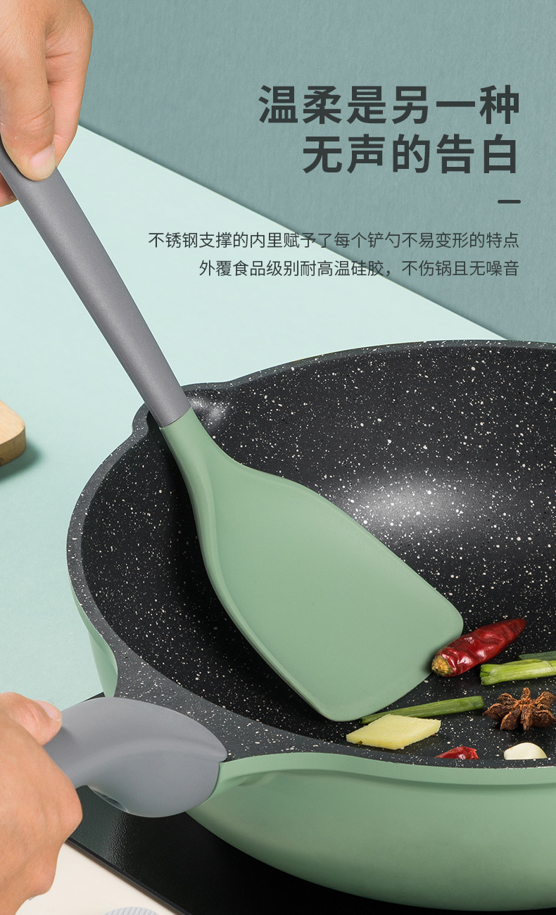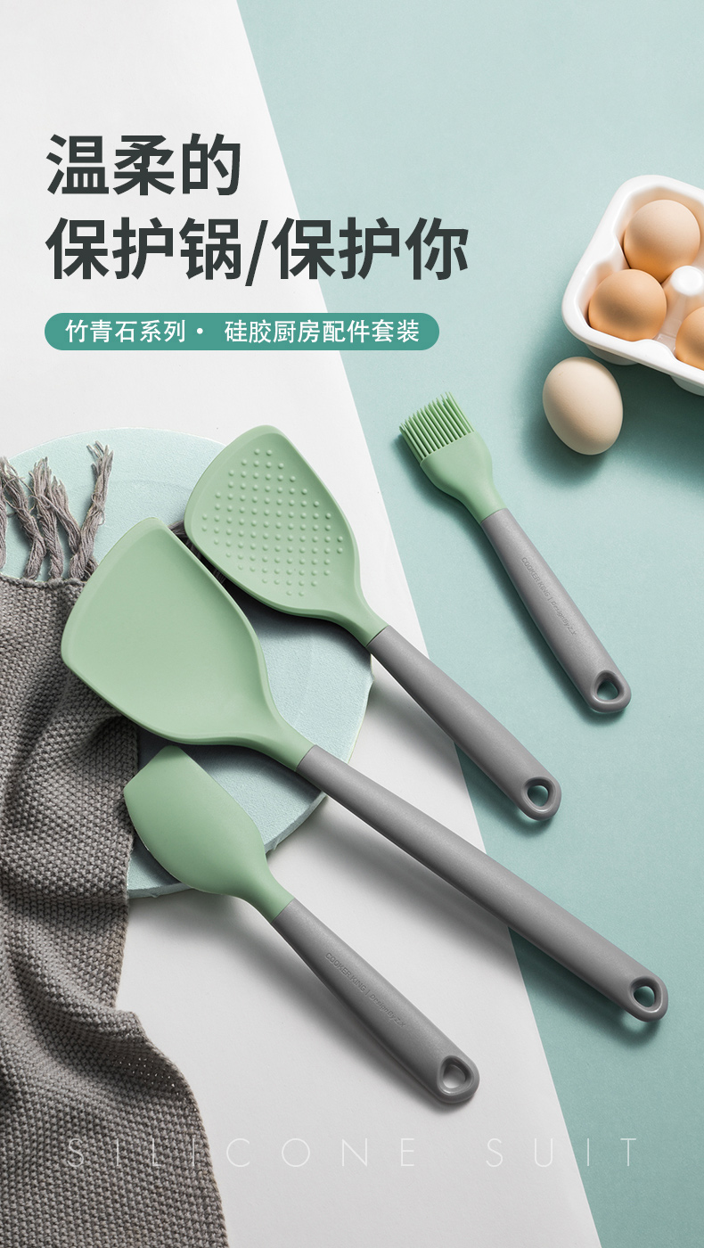 炊大皇(COOKER KING)硅胶漏勺 竹青石系列食品级硅胶捞饺子捞面捞火锅家用漏勺耐高温防烫手柄