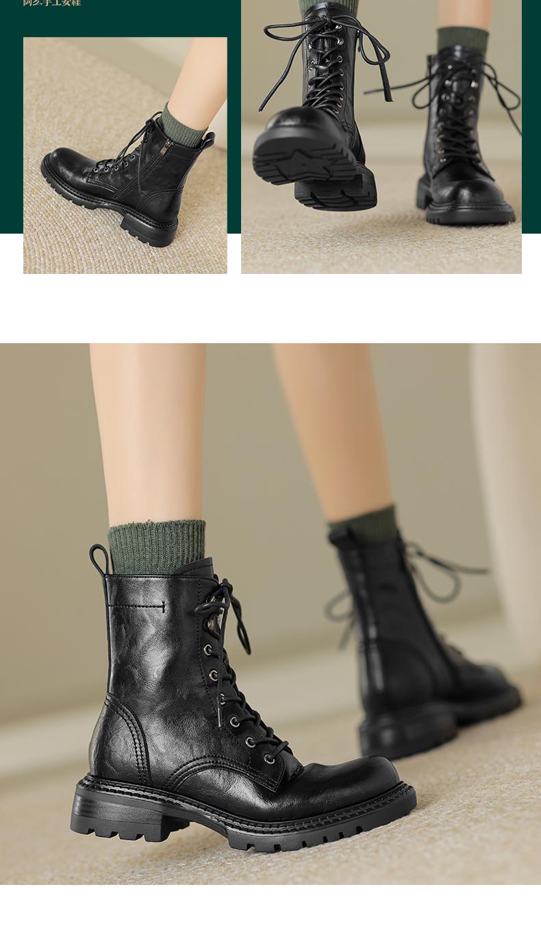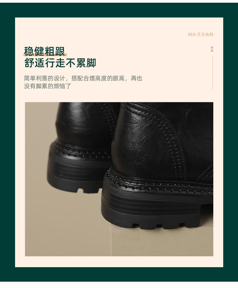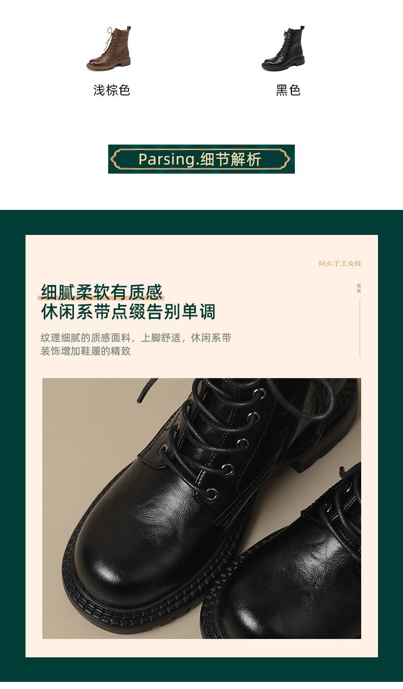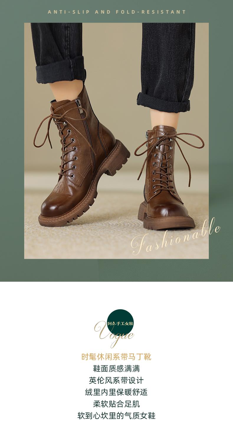 阿么手工女鞋真皮绑带马丁靴粗跟4.5CM百搭英伦风复古时尚短靴女