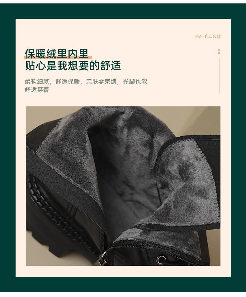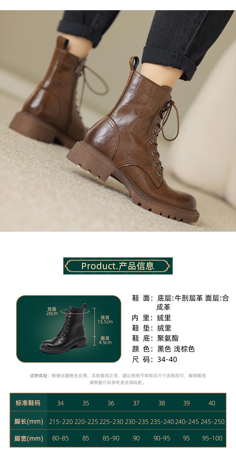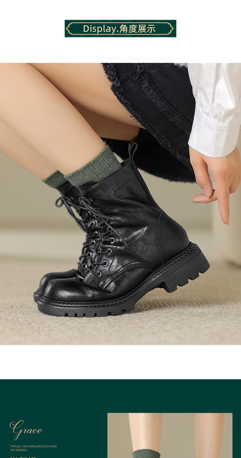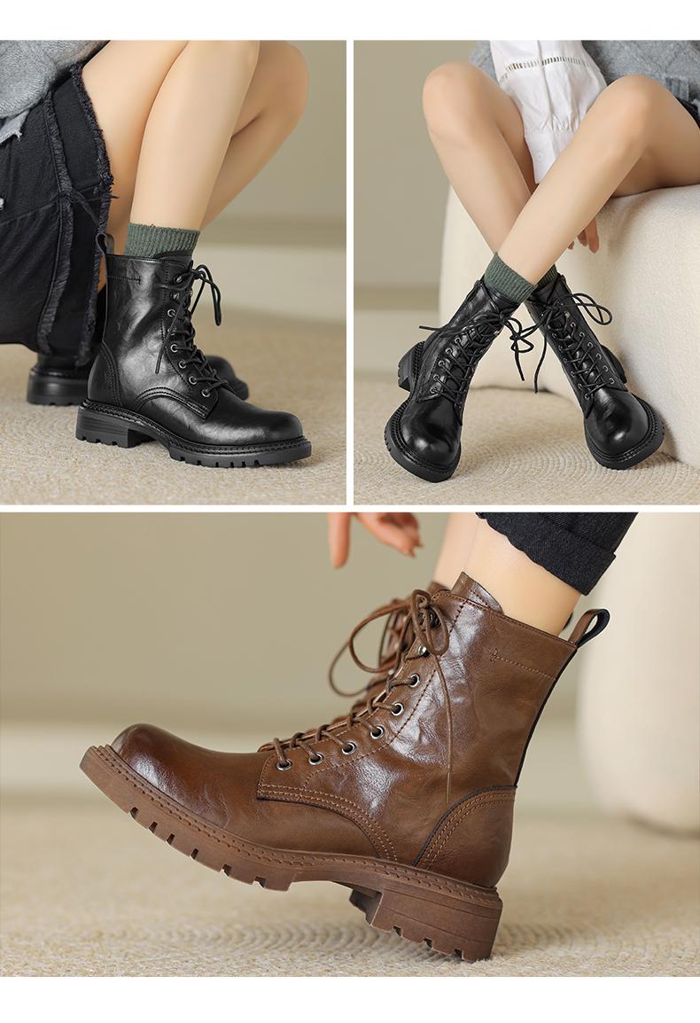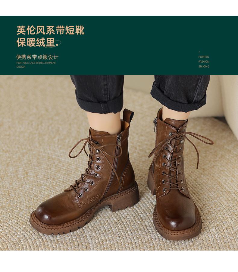 阿么手工女鞋真皮绑带马丁靴粗跟4.5CM百搭英伦风复古时尚短靴女