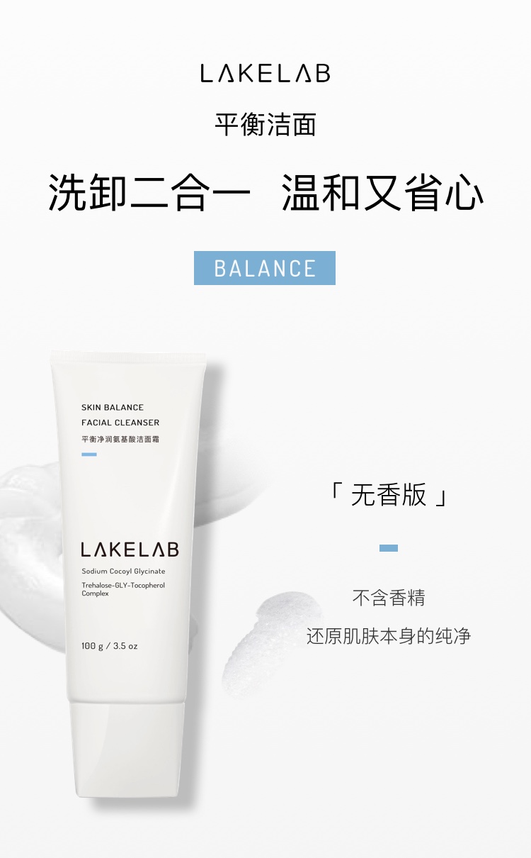 积分兑换&LAKELAB 氨基酸净润平衡洁面霜20ML