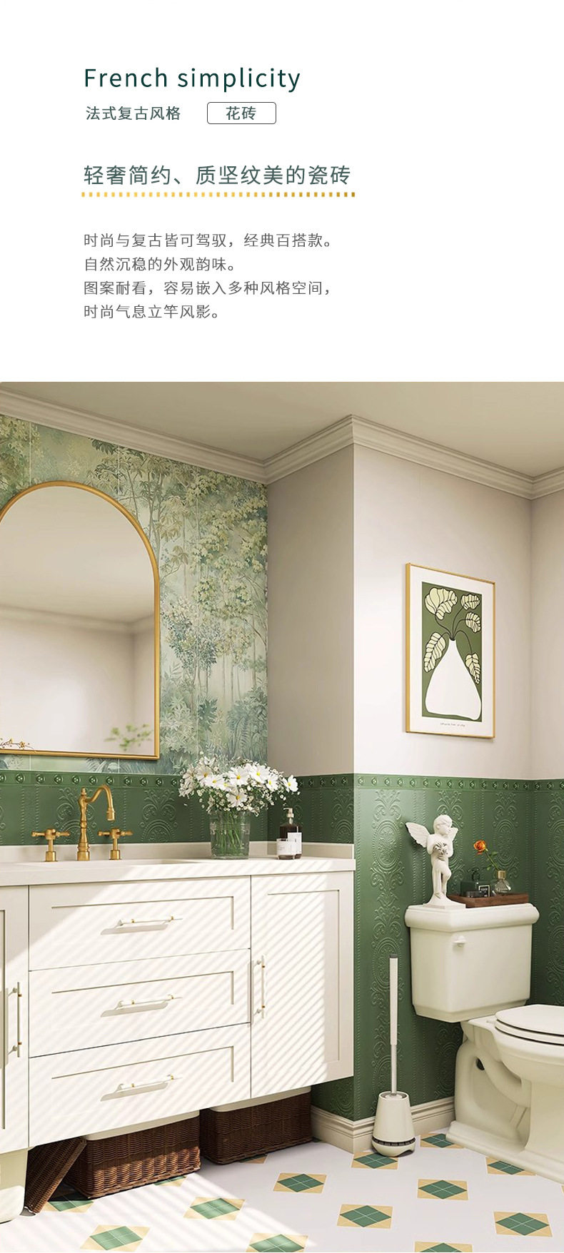 海基法式卫生间花砖厨房深林瓷砖复古墙砖地板砖300x1200布迷雾 商品图4