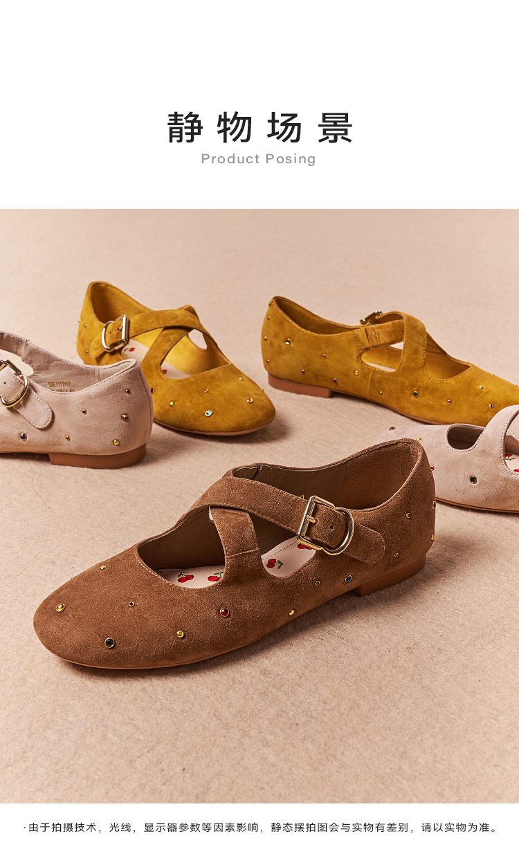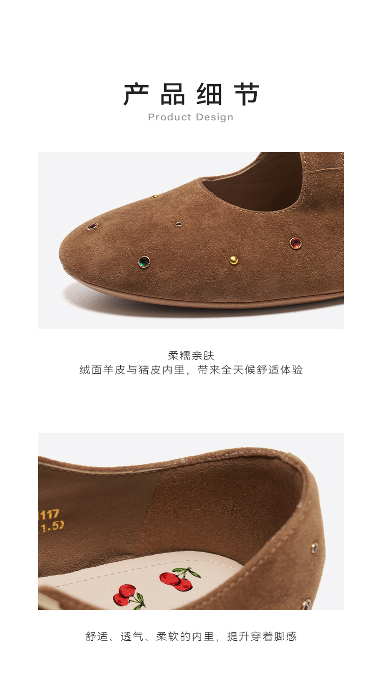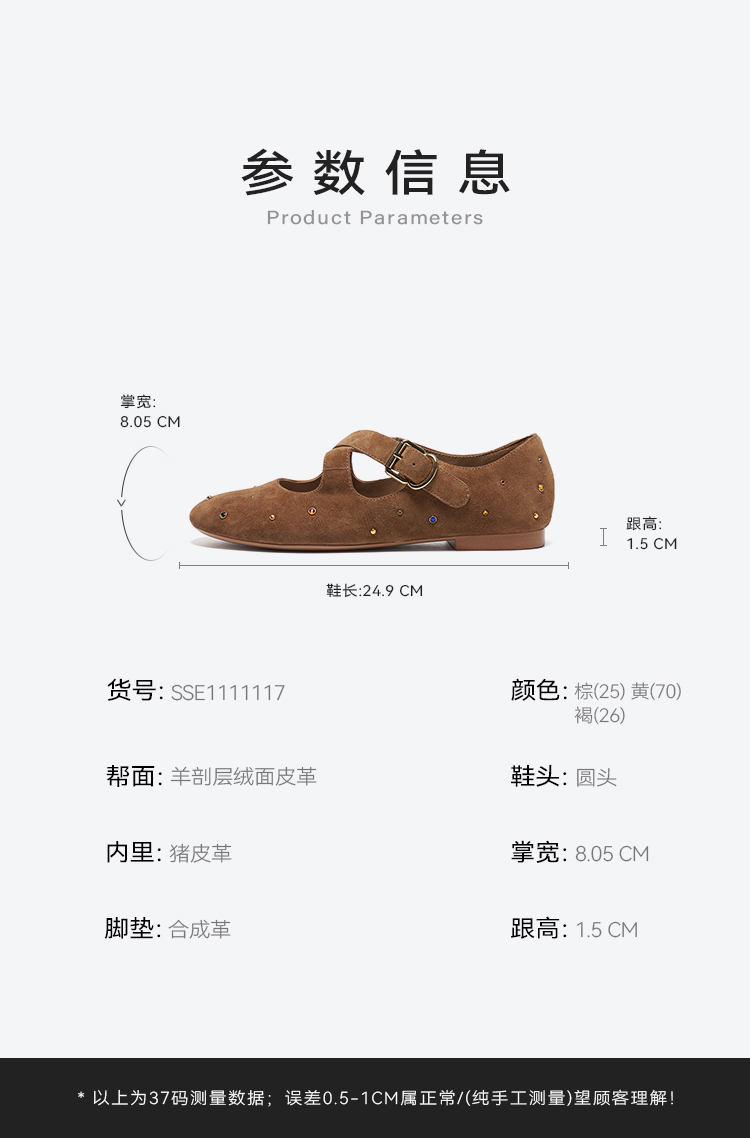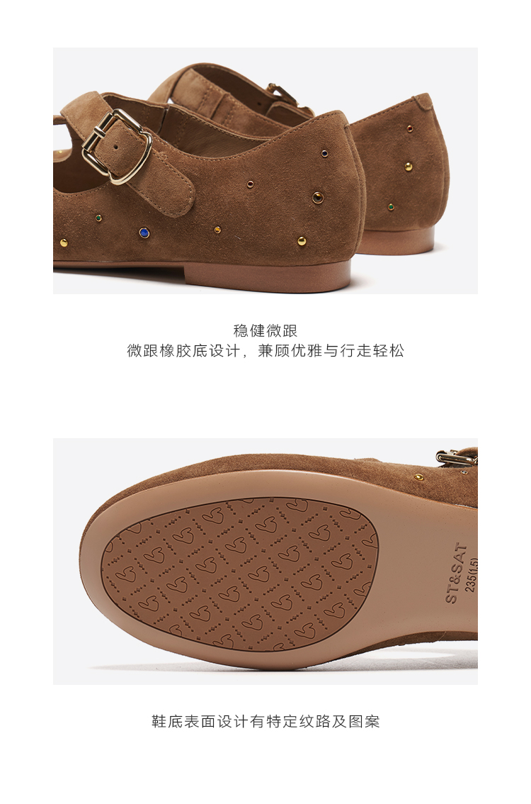 星期六26春新款复古绒面彩钉玛丽珍鞋SSE1111117