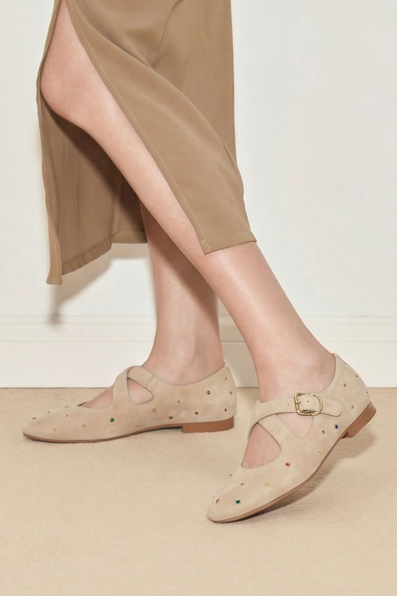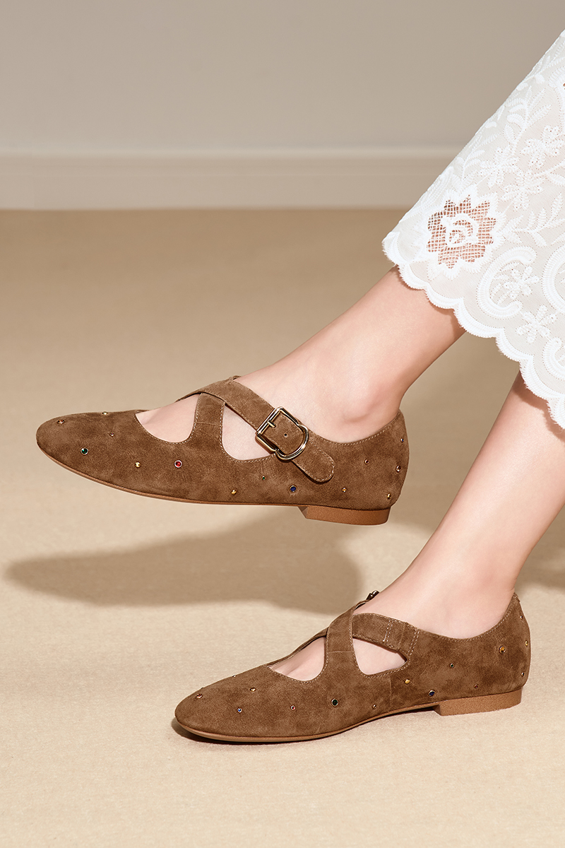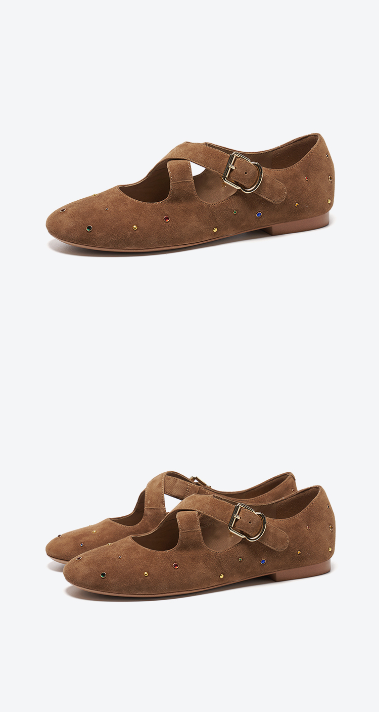 星期六26春新款复古绒面彩钉玛丽珍鞋SSE1111117