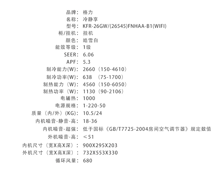 格力·冷静享变频冷暖大一匹一级节能挂机空调KFR-26GW/(26545)FNhAa-B1(WIFI)(皓雪白)