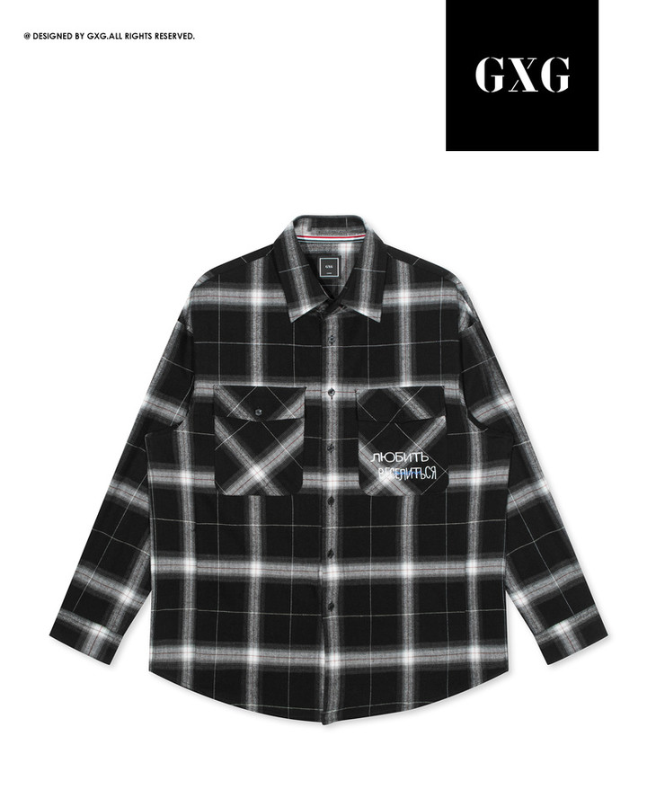 GXG男装2019年冬季新格纹格子刺绣长袖衬衫男衬衣外套 GY103790G