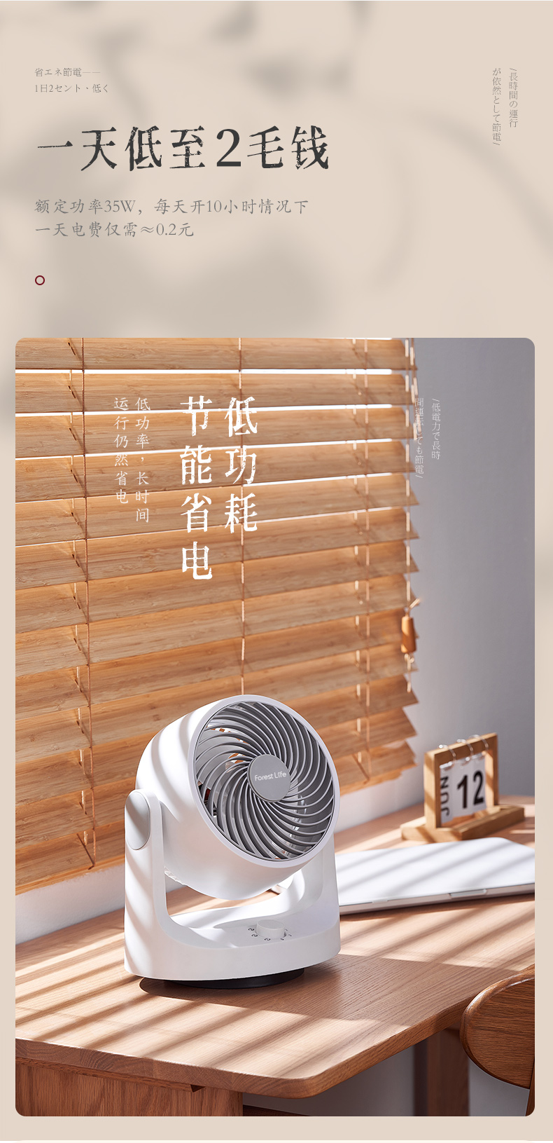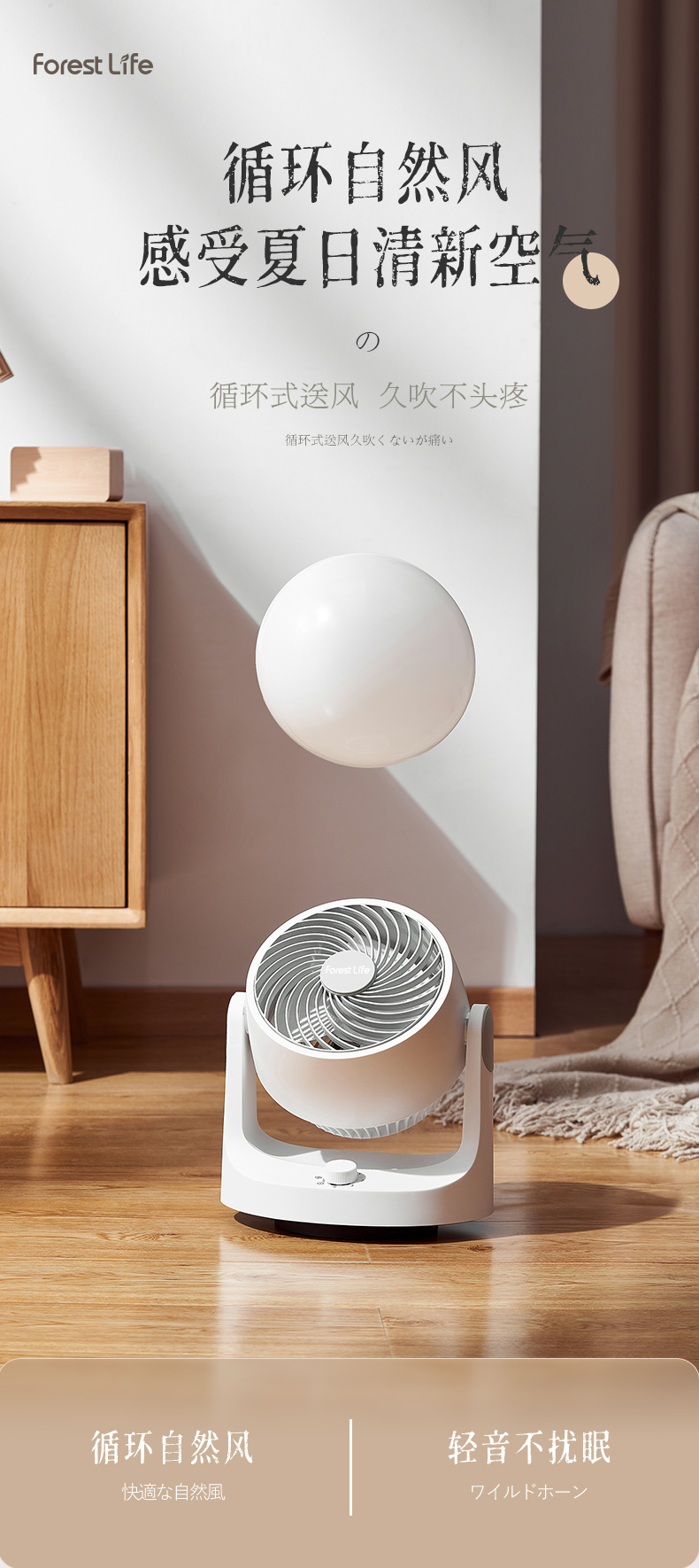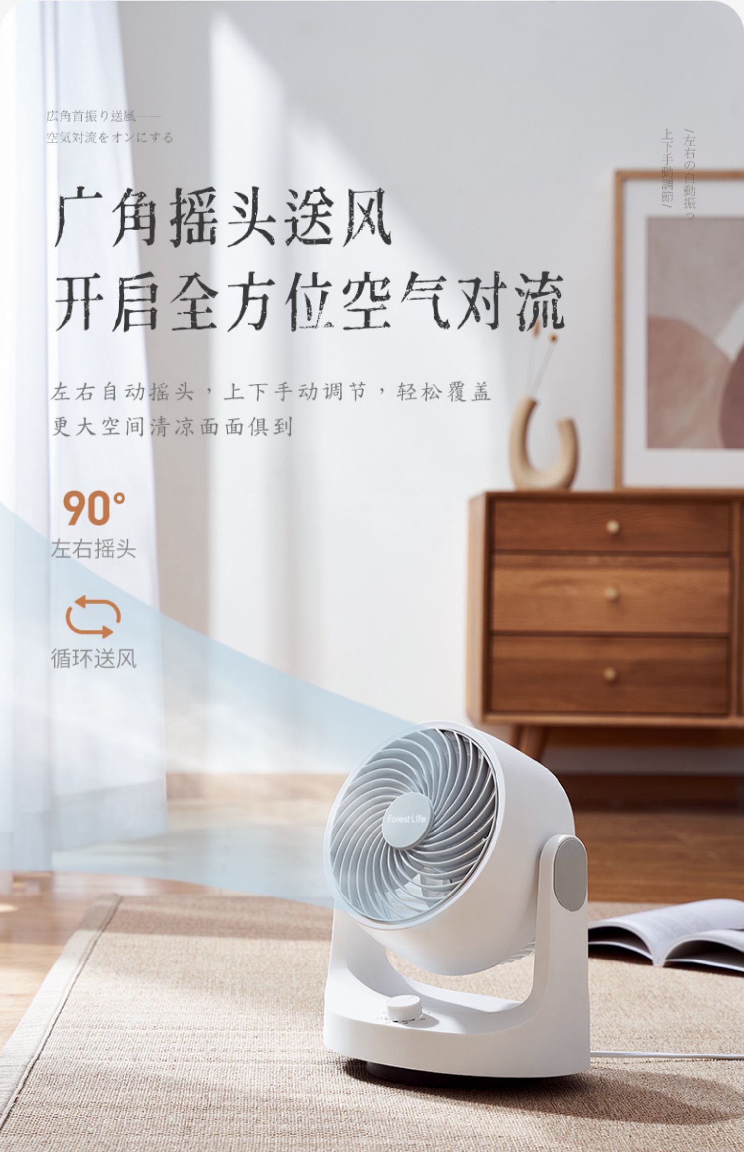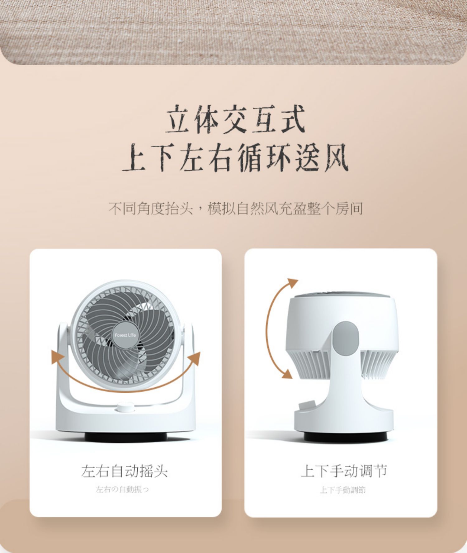 forestlife空气循环扇家用小型静音风扇宿舍台式桌面可摇头电风扇