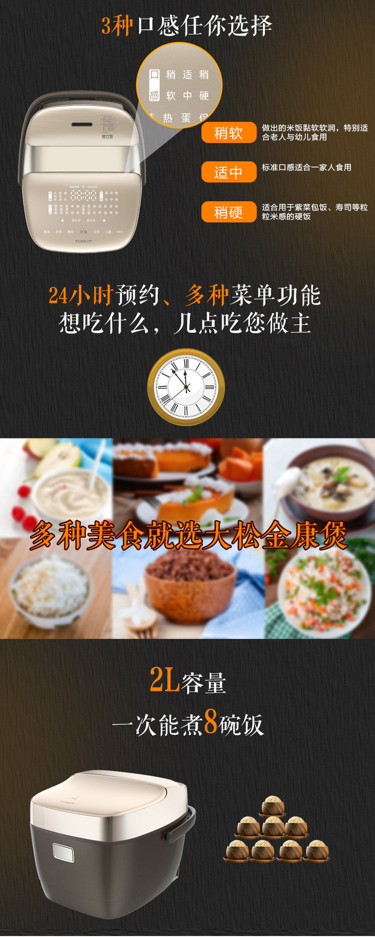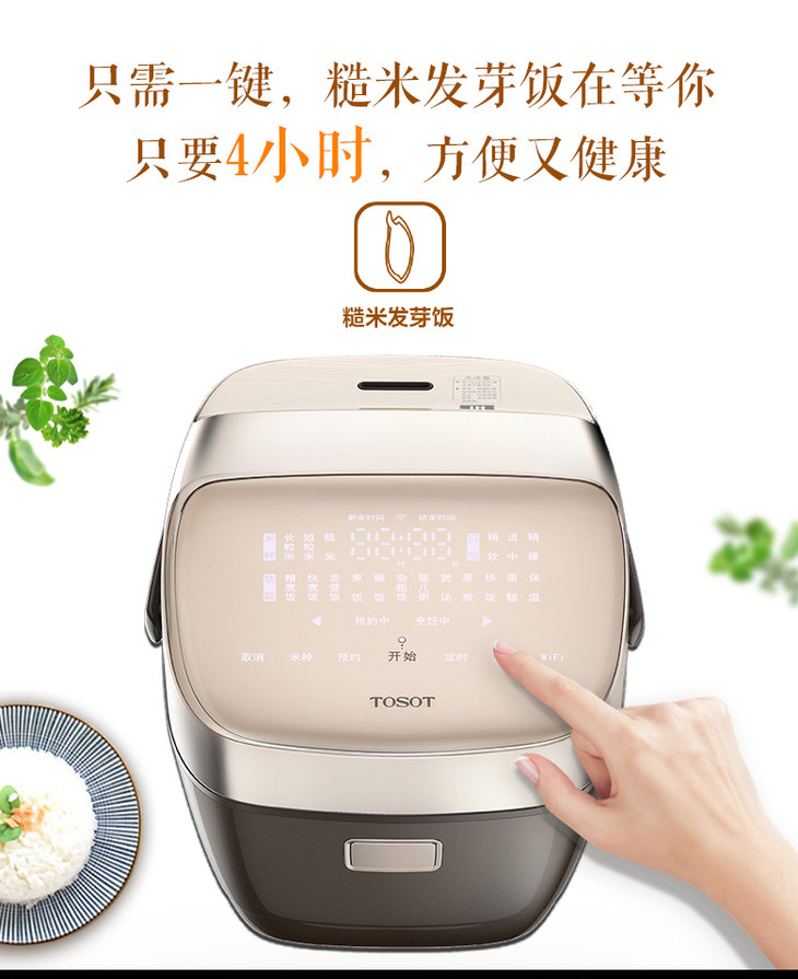 大松IH智能电饭煲 2L 一键煮好糙米发芽饭 GDCF-2008C 咖啡色