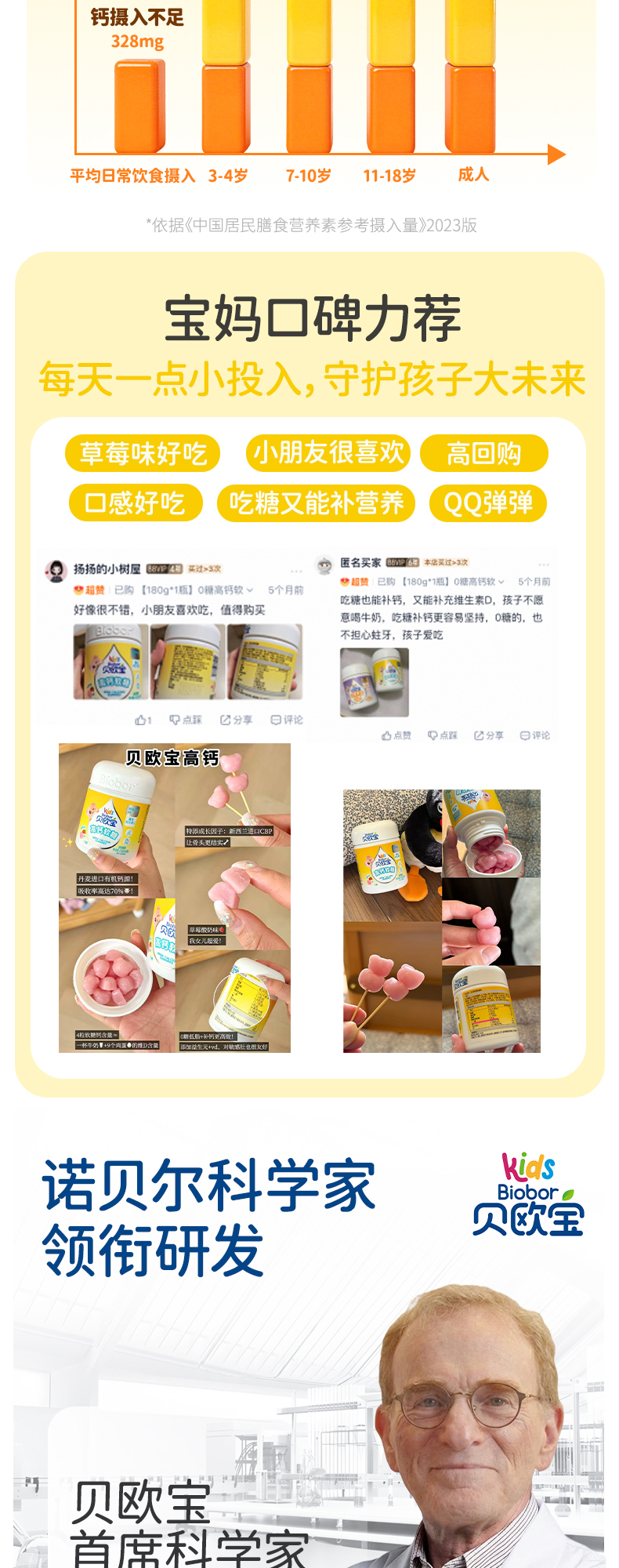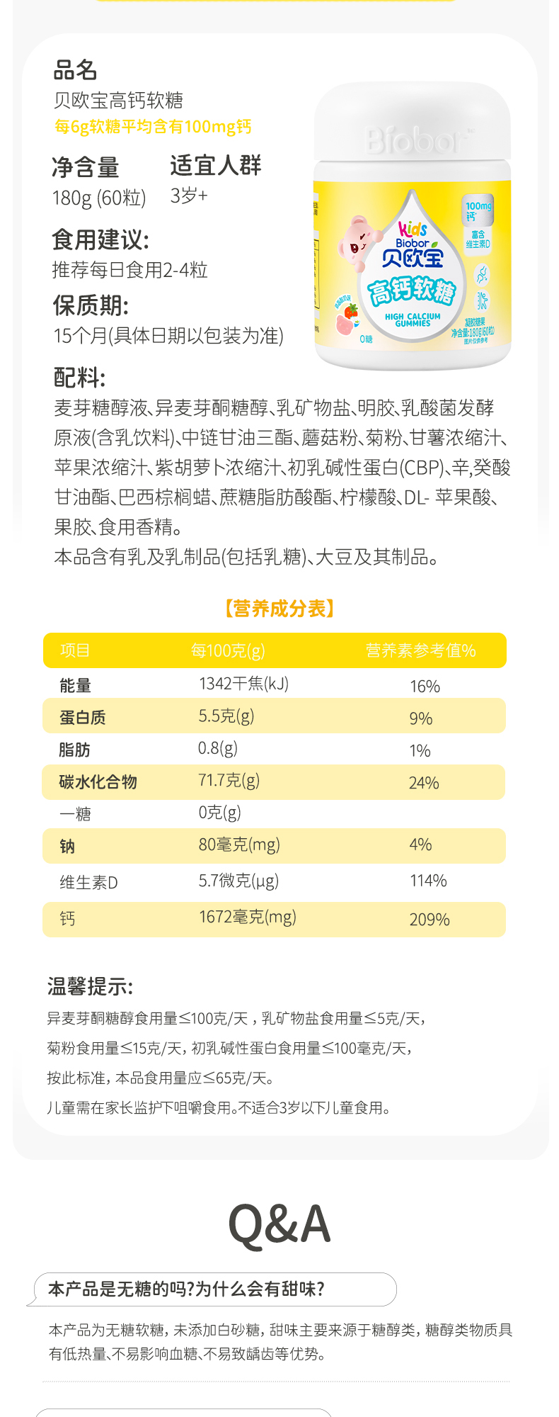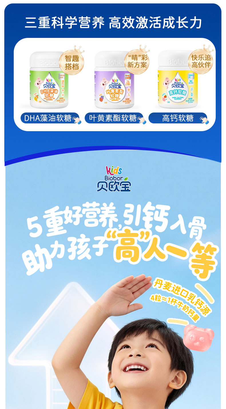 贝欧宝高钙软糖丹麦进口100mg有机钙新西兰CBP儿童成长营养软糖