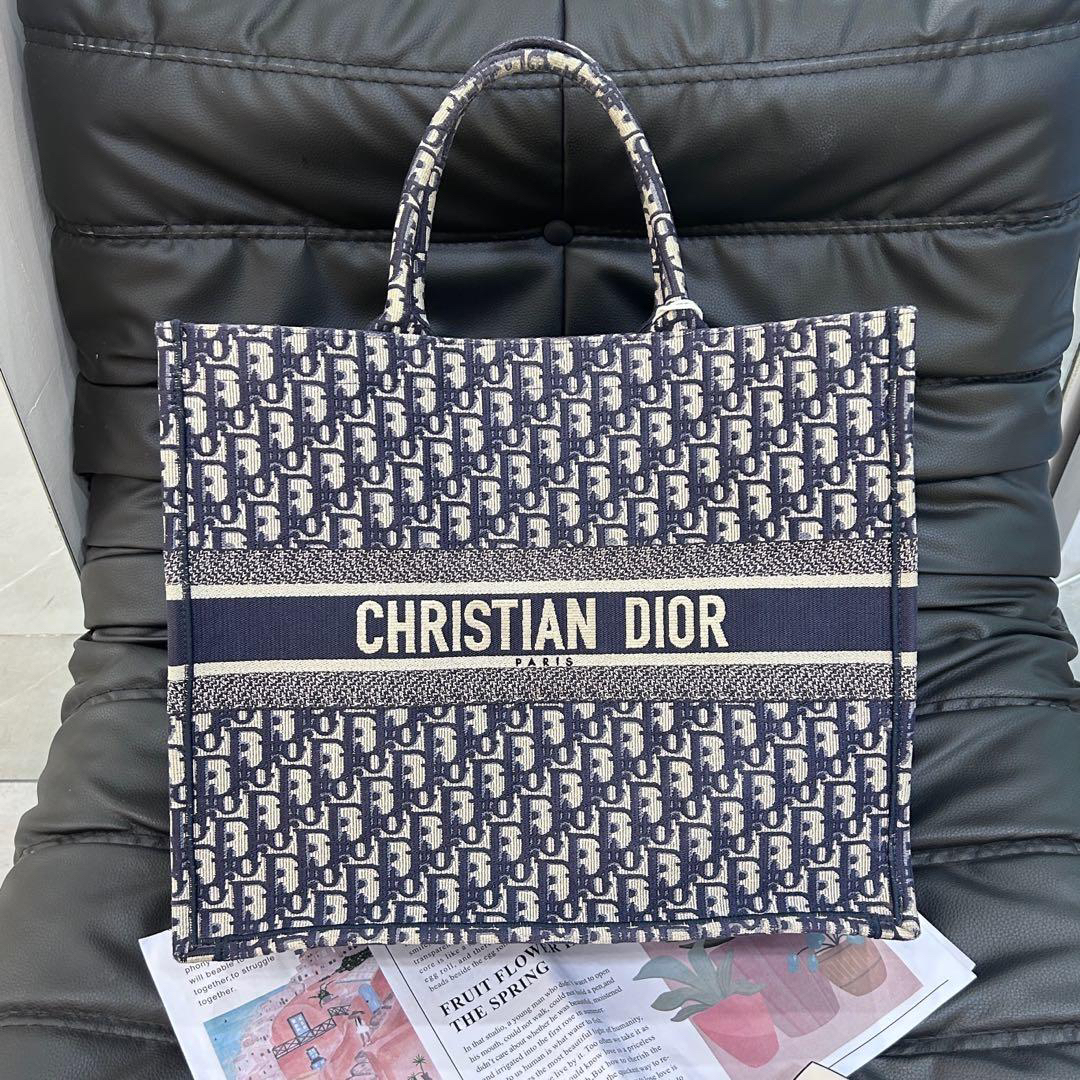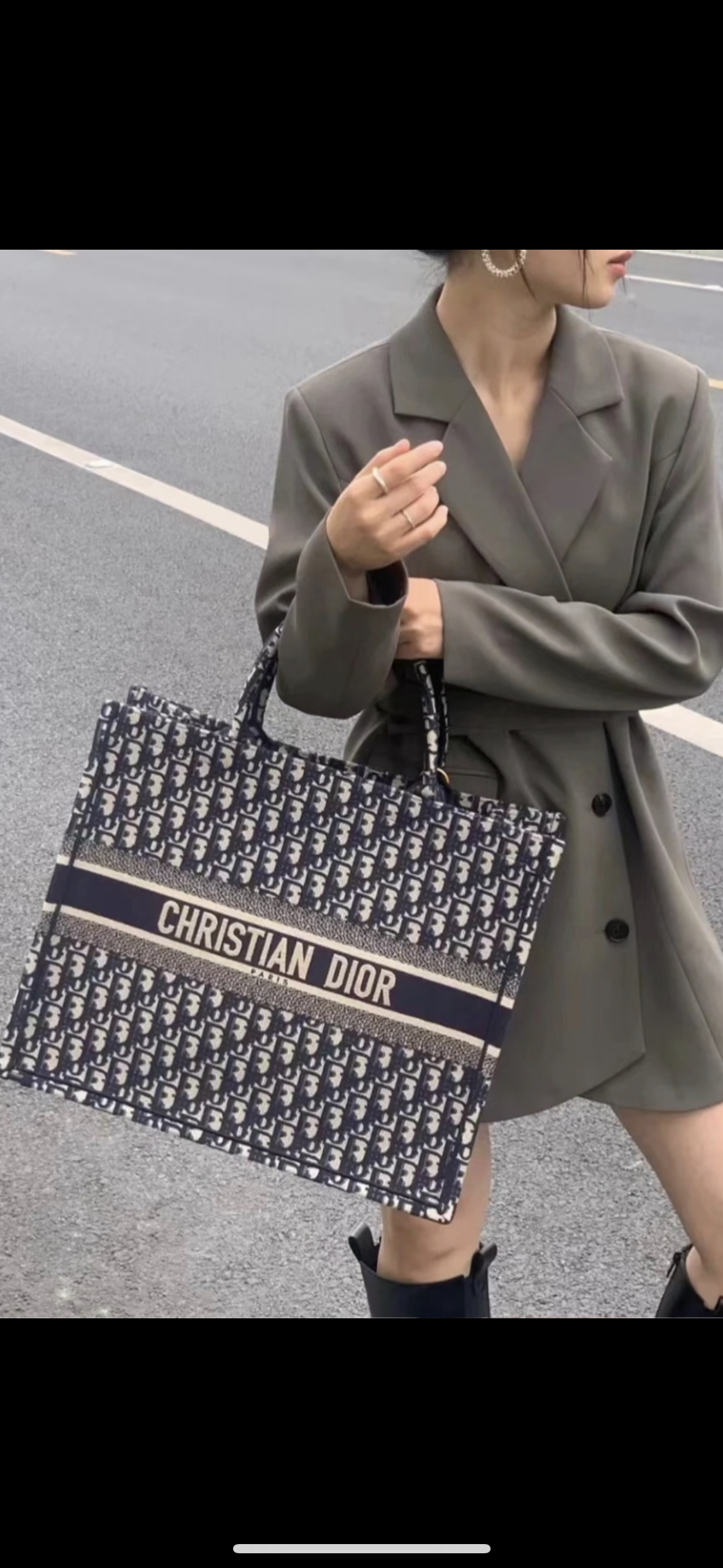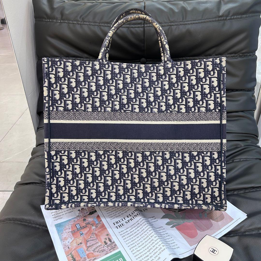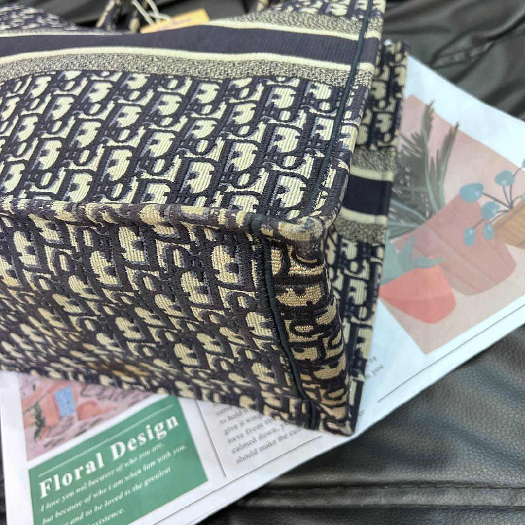 正品二手 Dior 大号 蓝色 老花 刺绣 booktote 托特包🎣95新 41*33。包底部和内里有一处污渍 包角和手柄有正常使用感。超实用大号