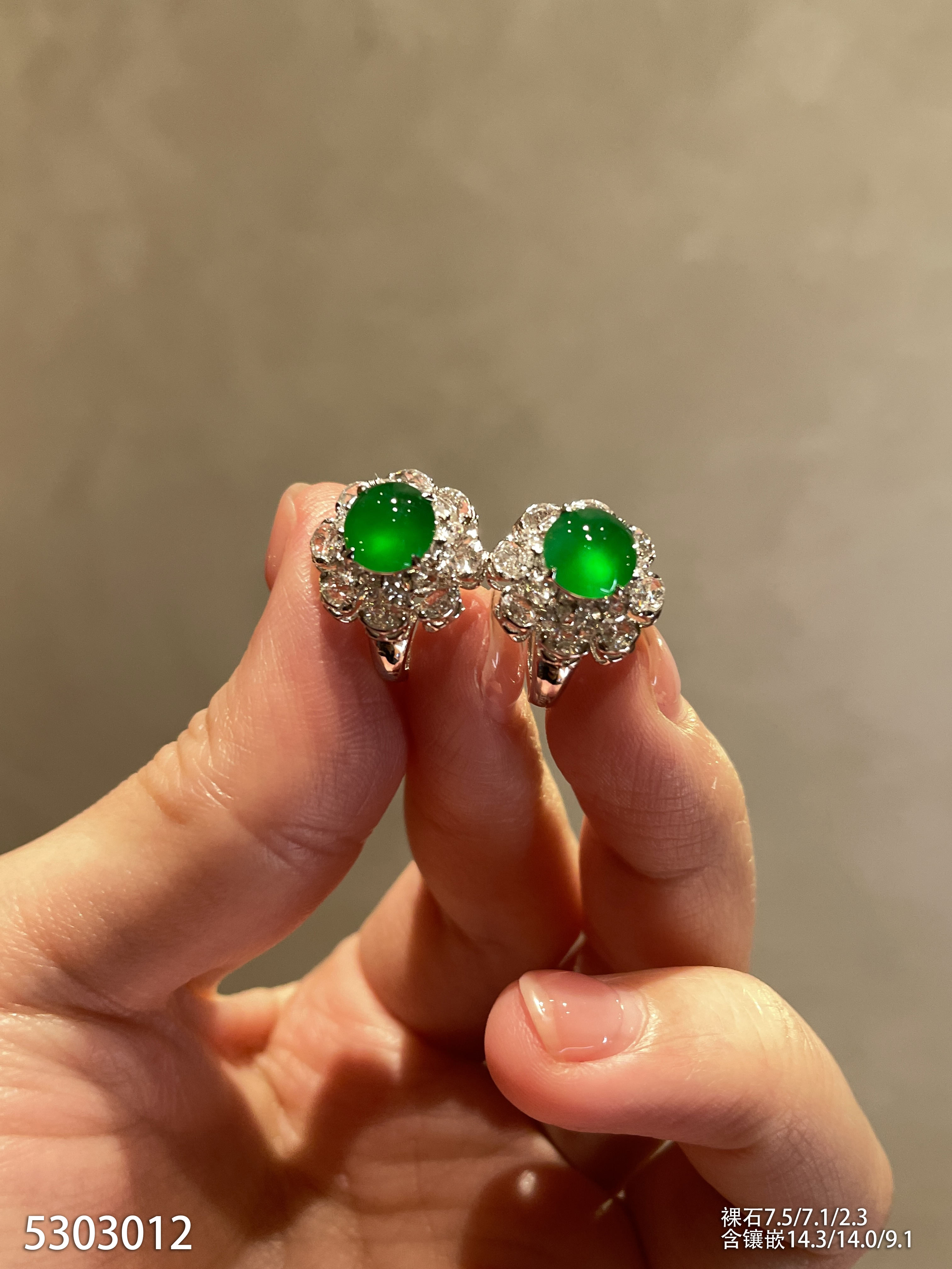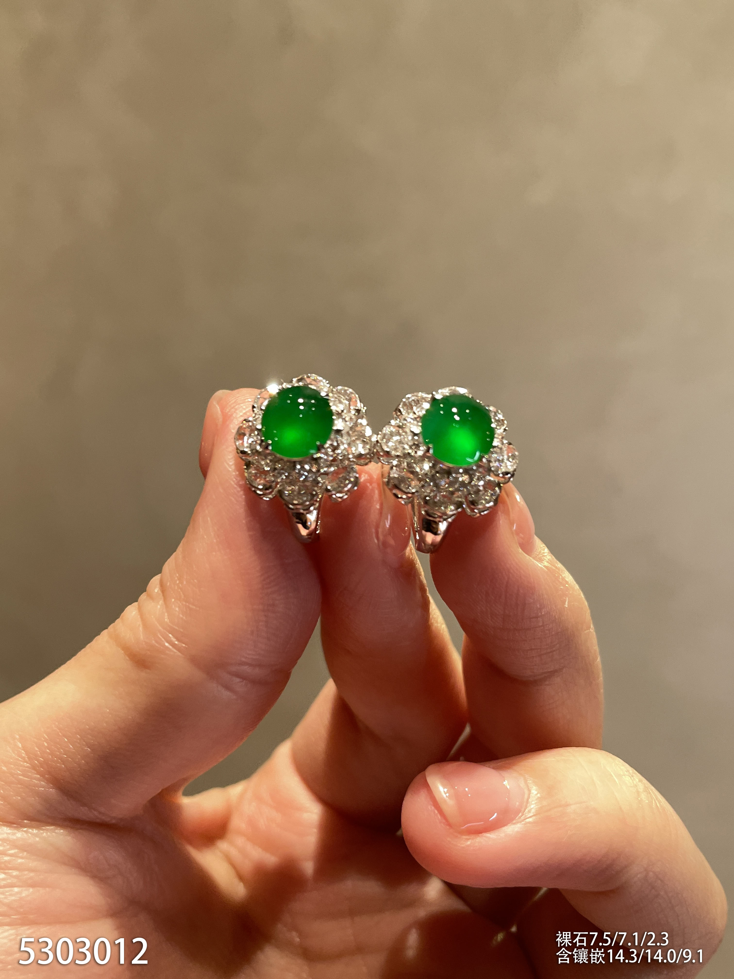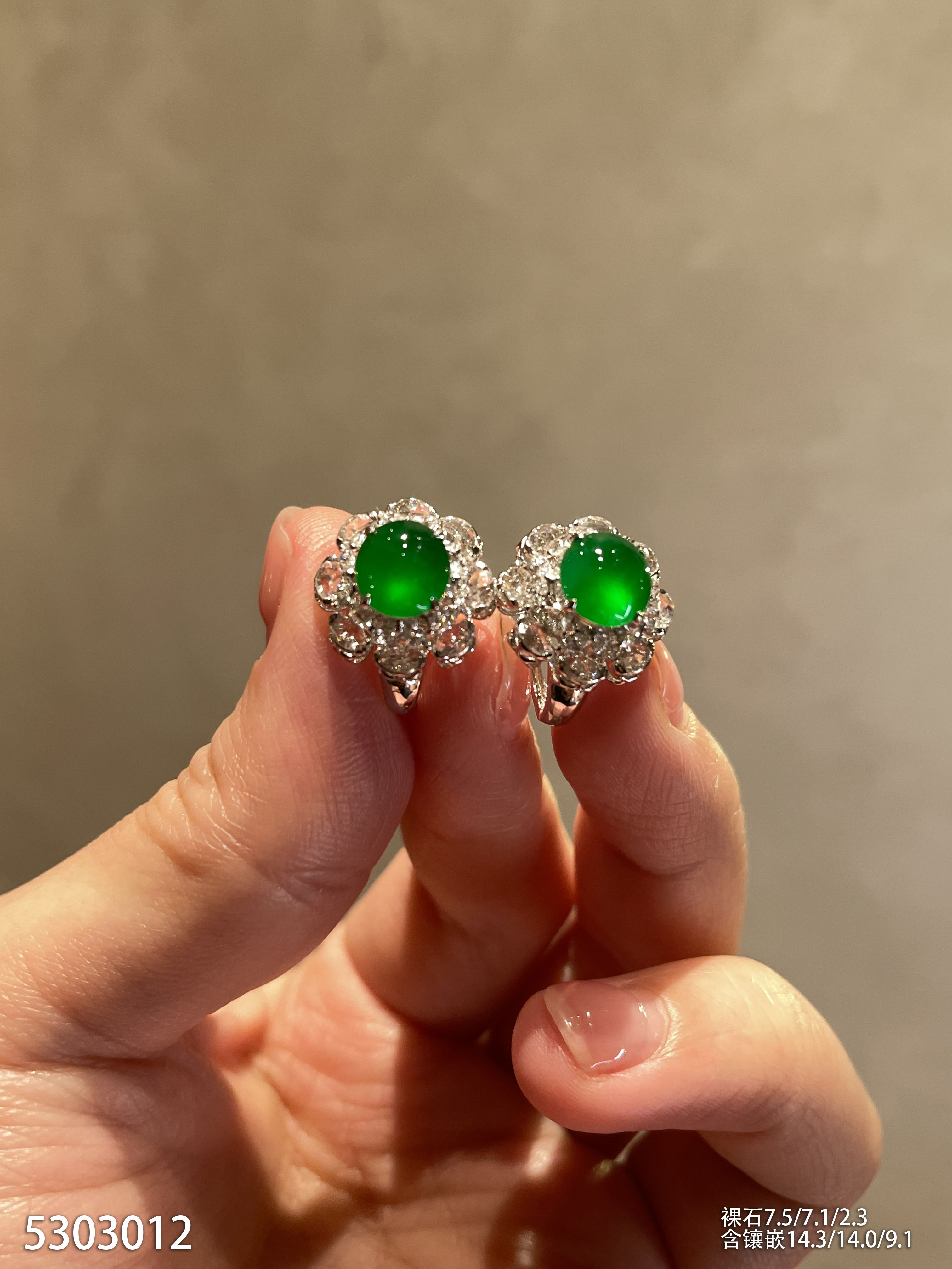 玻璃种艳绿蛋面耳钉【5303012】具体价格微信咨询