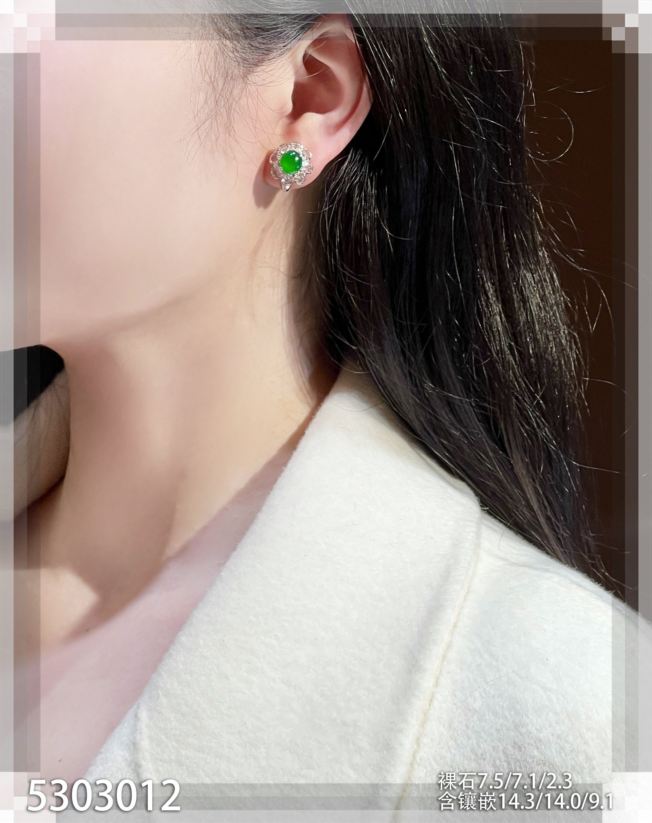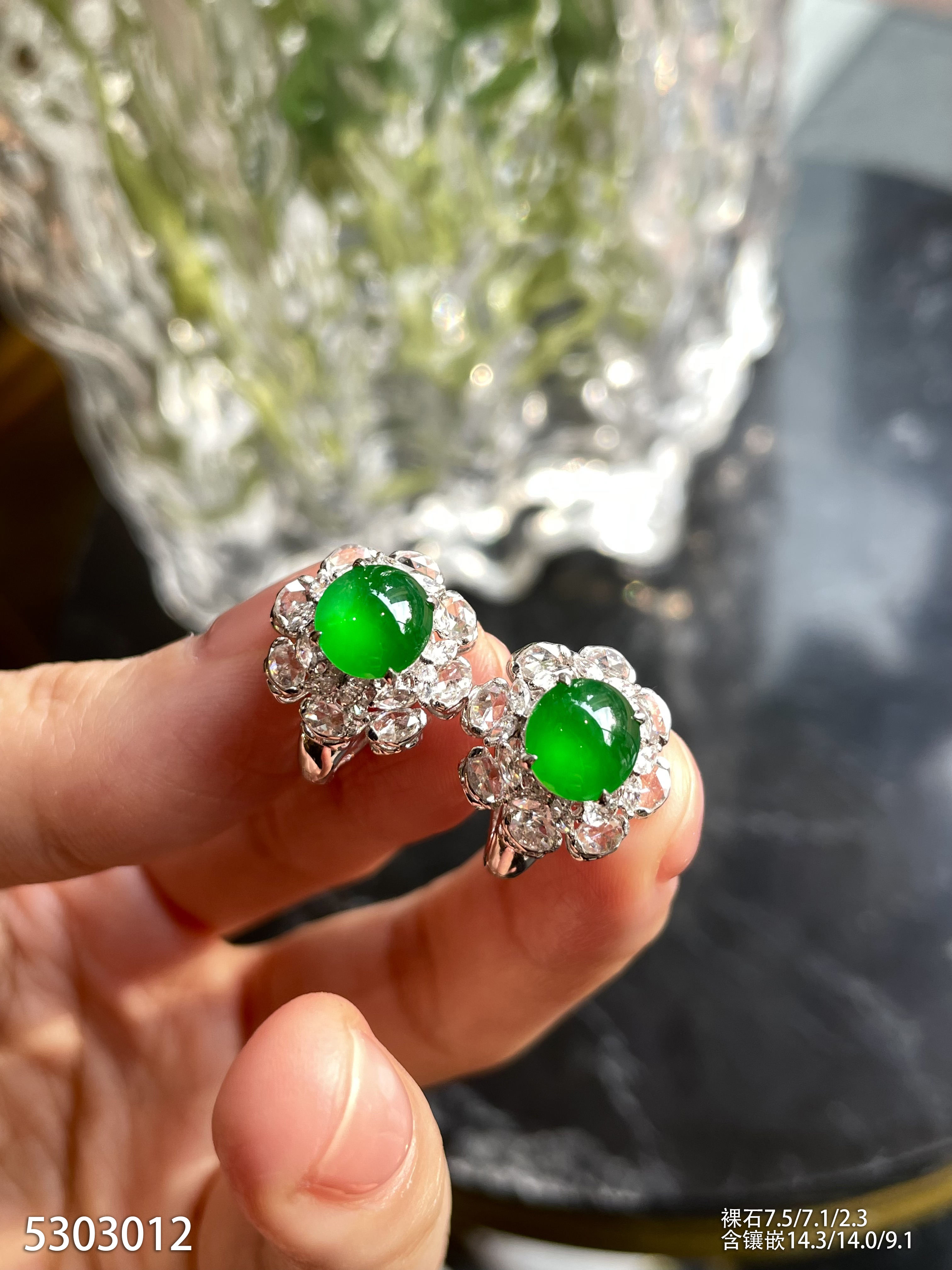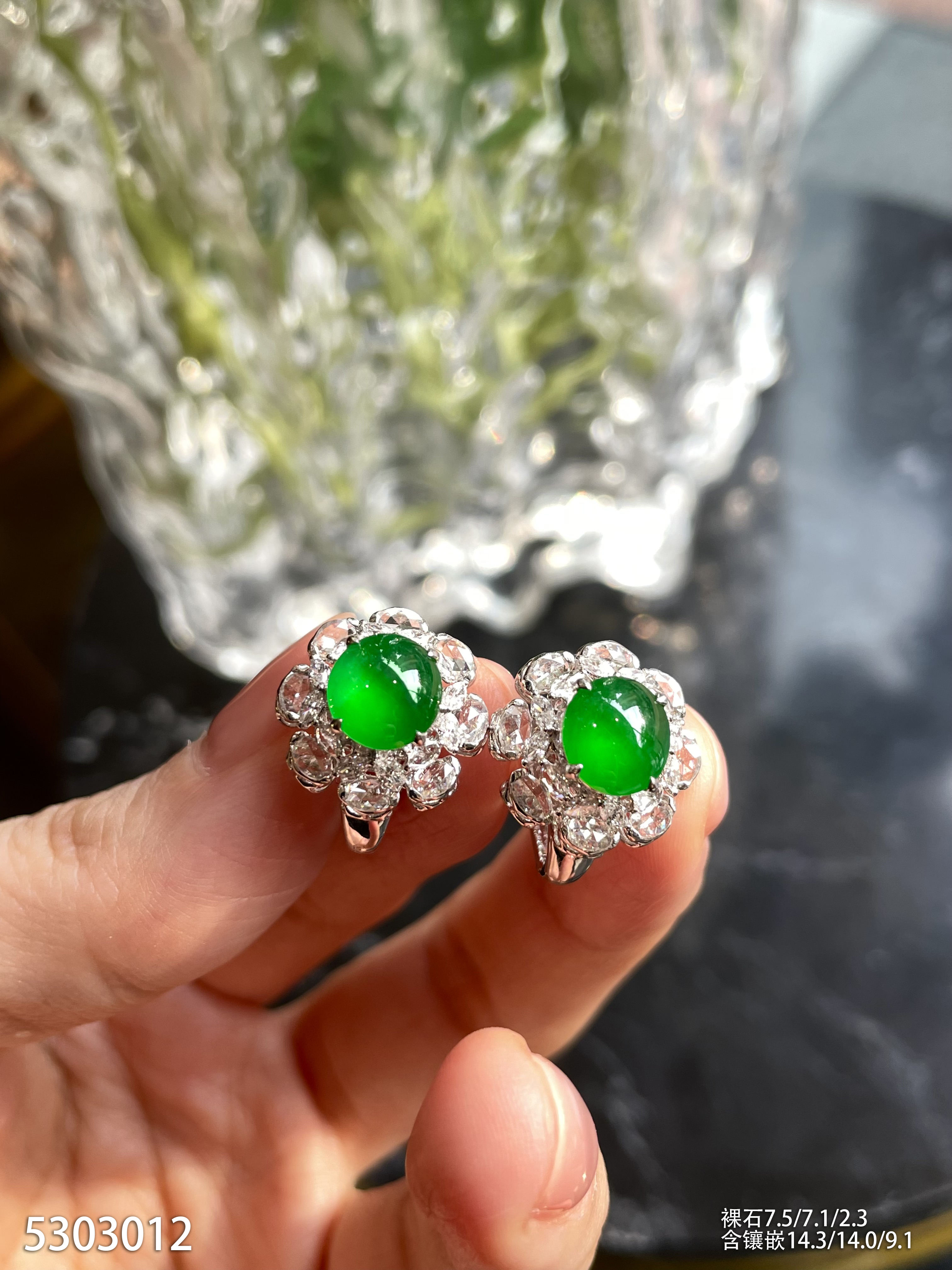 玻璃种艳绿蛋面耳钉【5303012】具体价格微信咨询