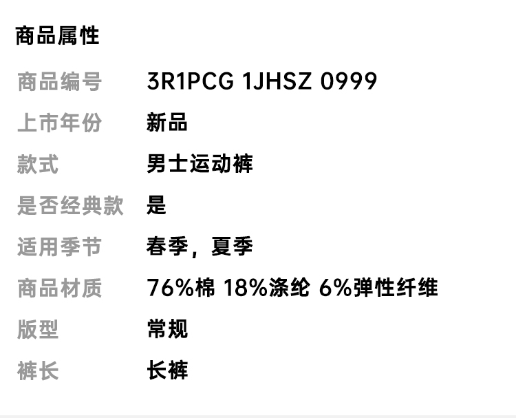 EMPORIO ARMANI 阿玛尼 男士棉质抽绳休闲运动裤 黑色 3R1PCG 1JHSZ 0999