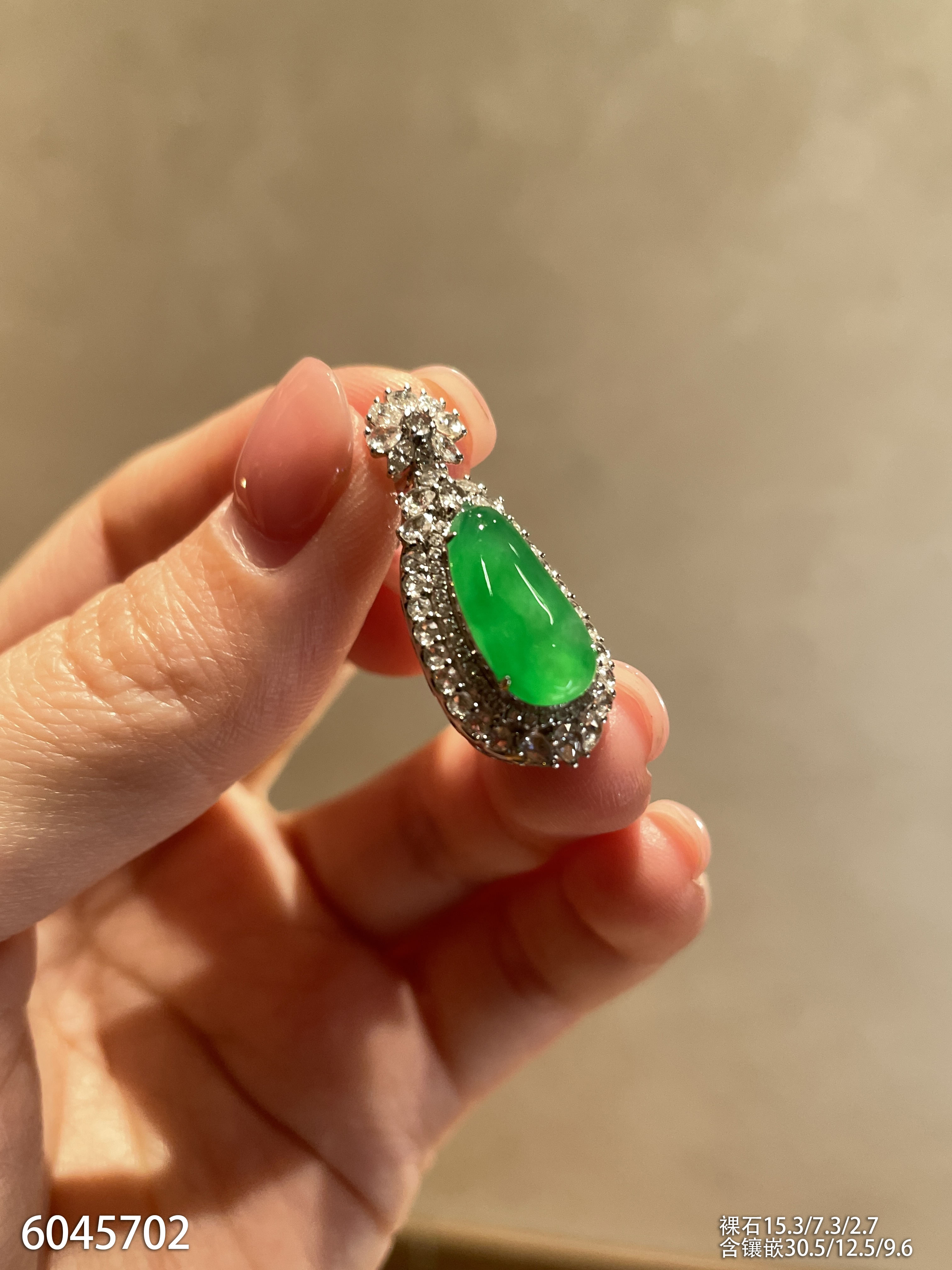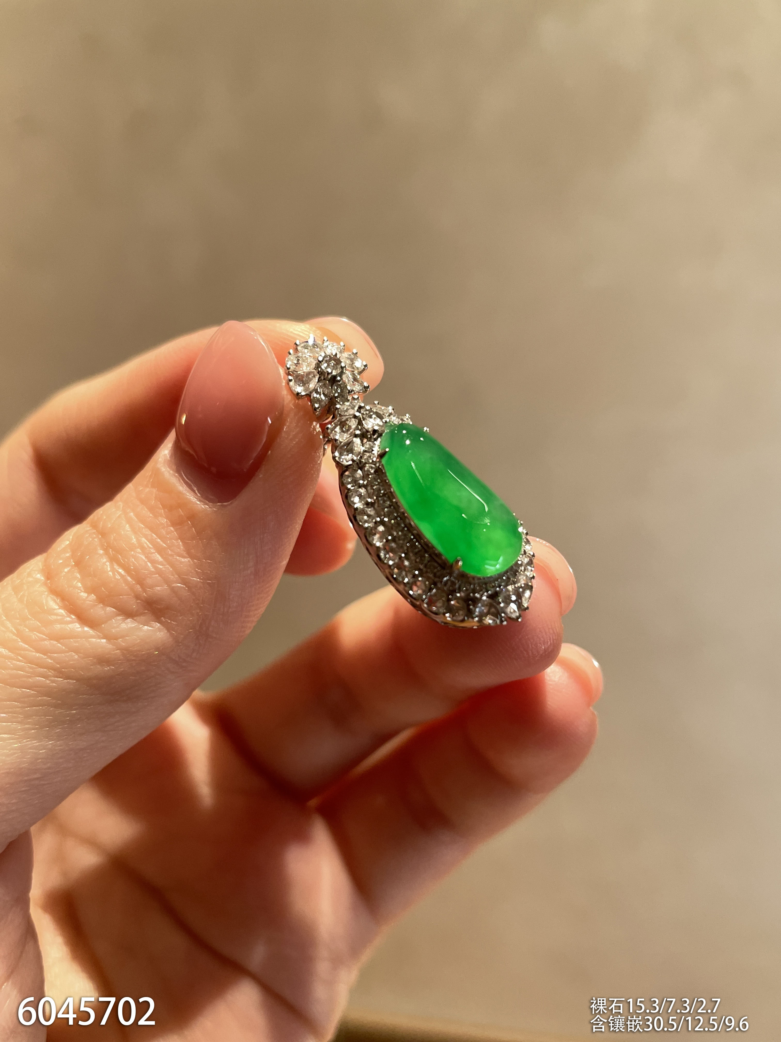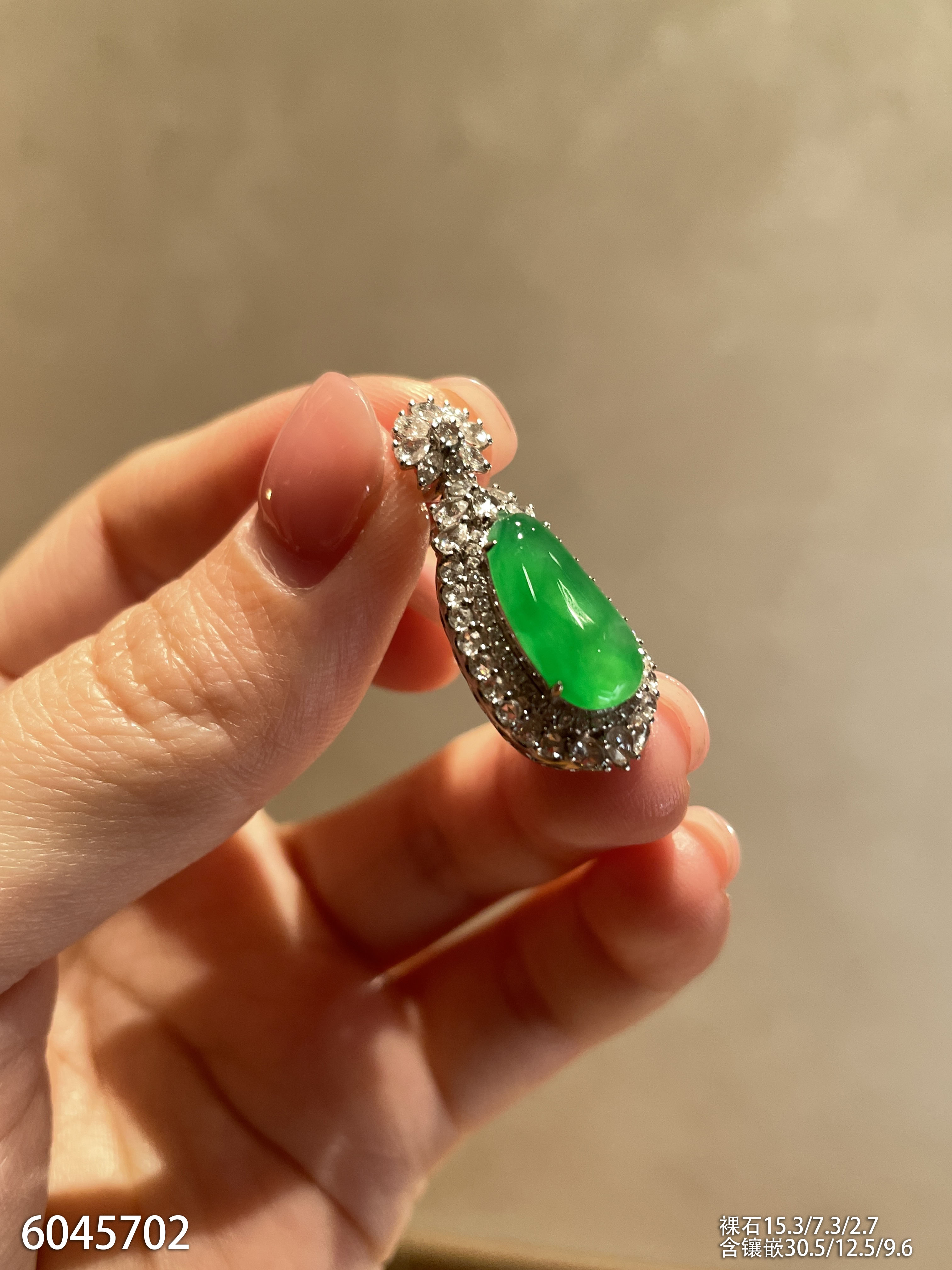81-1072707,老坑玻璃种帝王绿蛋面耳坠,具体价格微信咨询