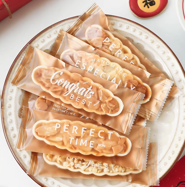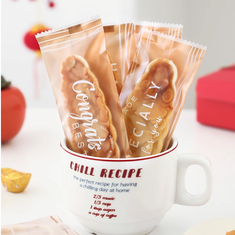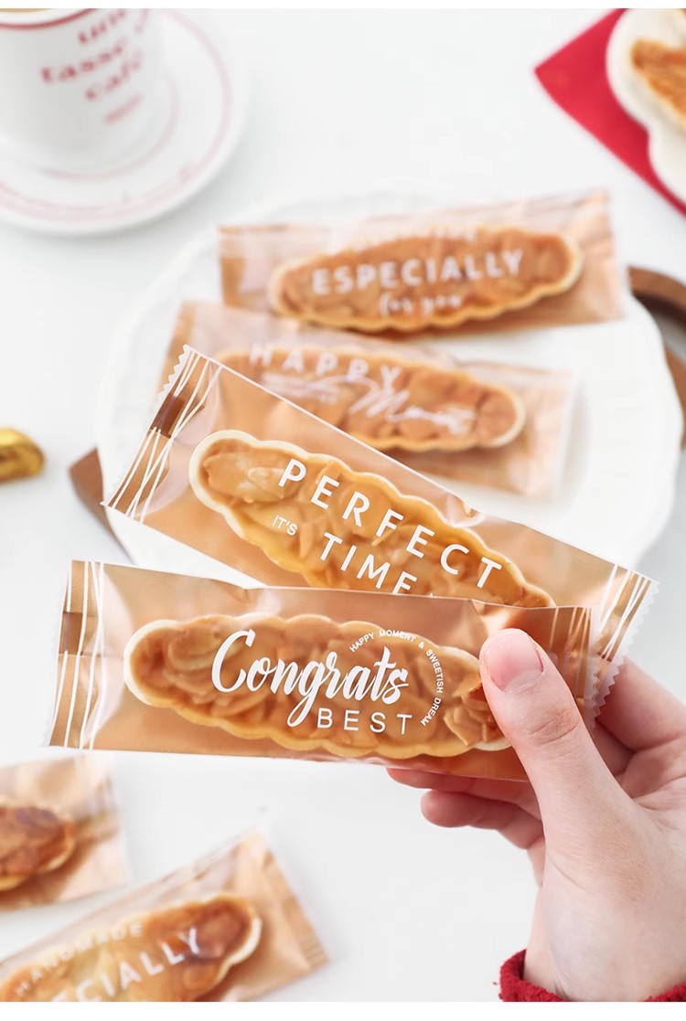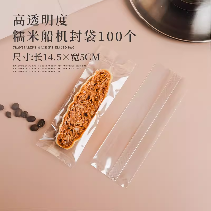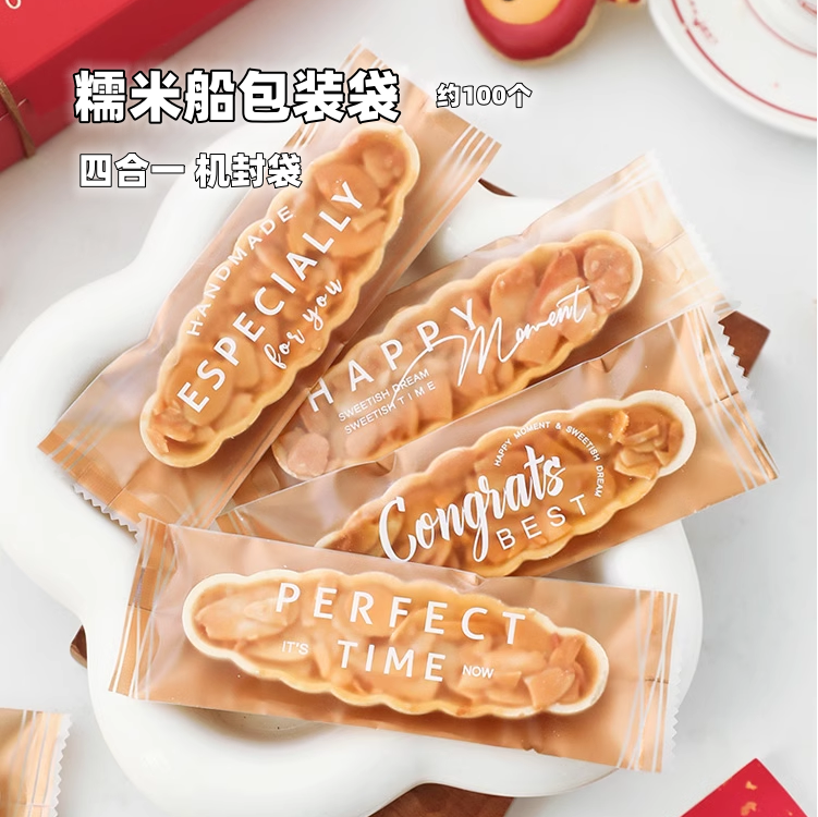 约100个装 糯米船机封袋【14.5*5cm】 金色/透明款长条形包装袋 牛轧酥饼干长条袋