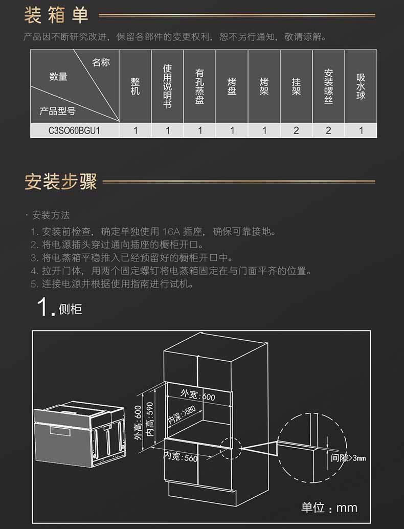 【美居】卡萨帝 蒸烤一体机 C3SO60BGU1 商品图2