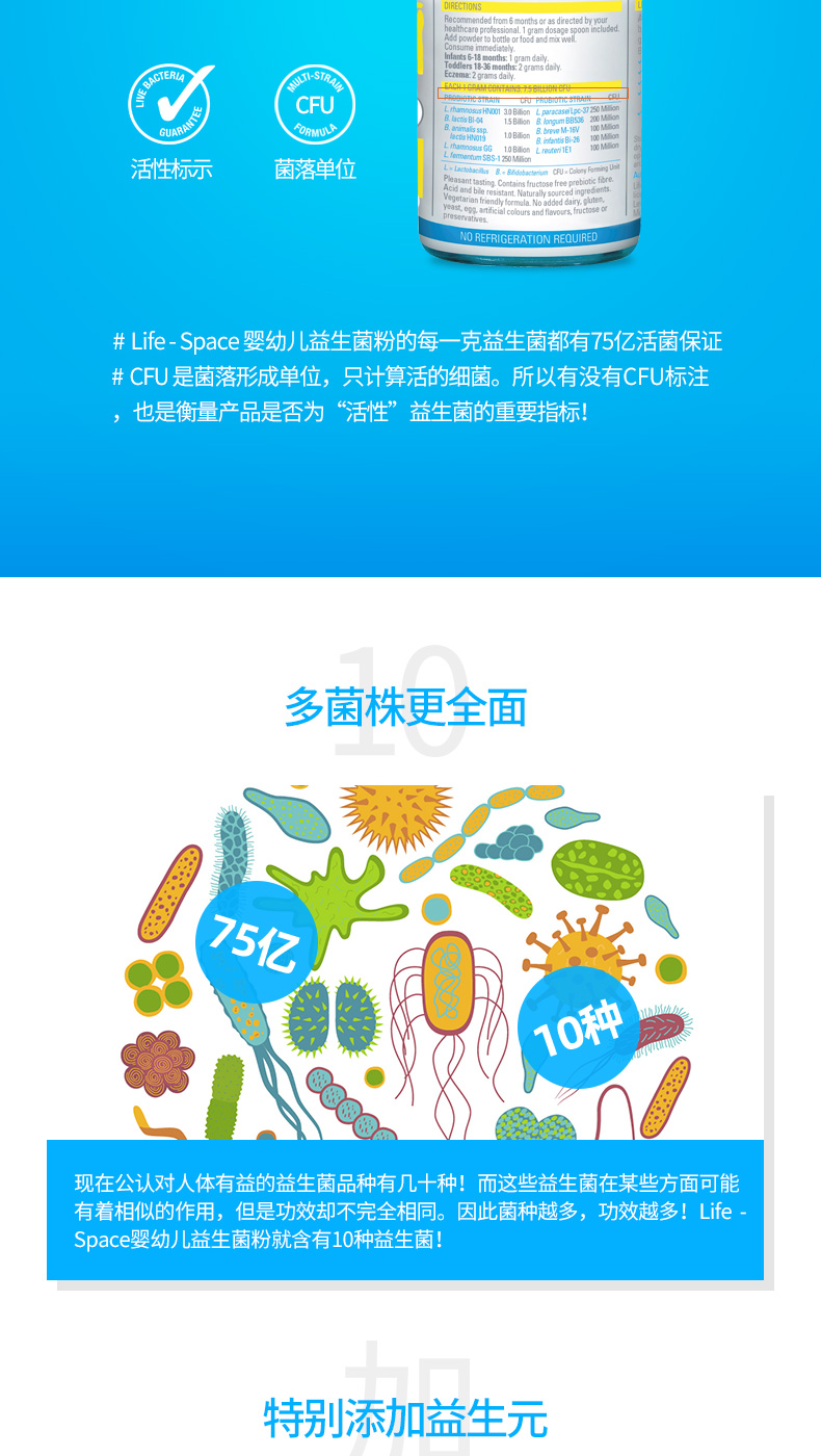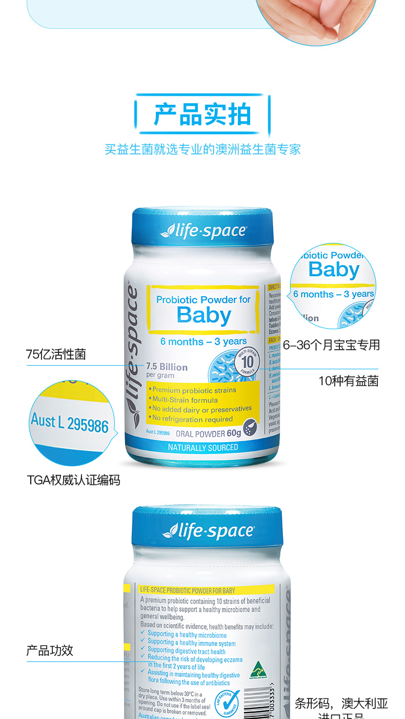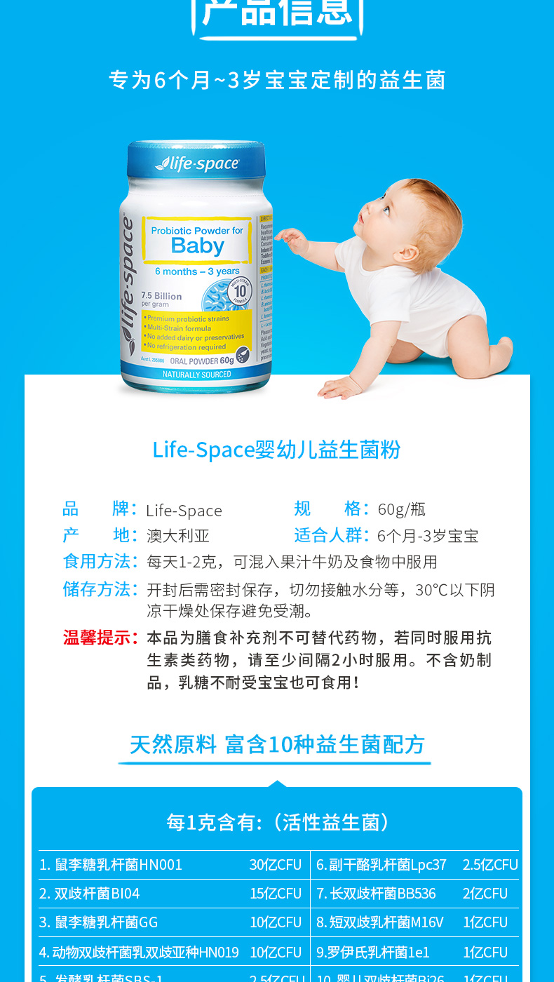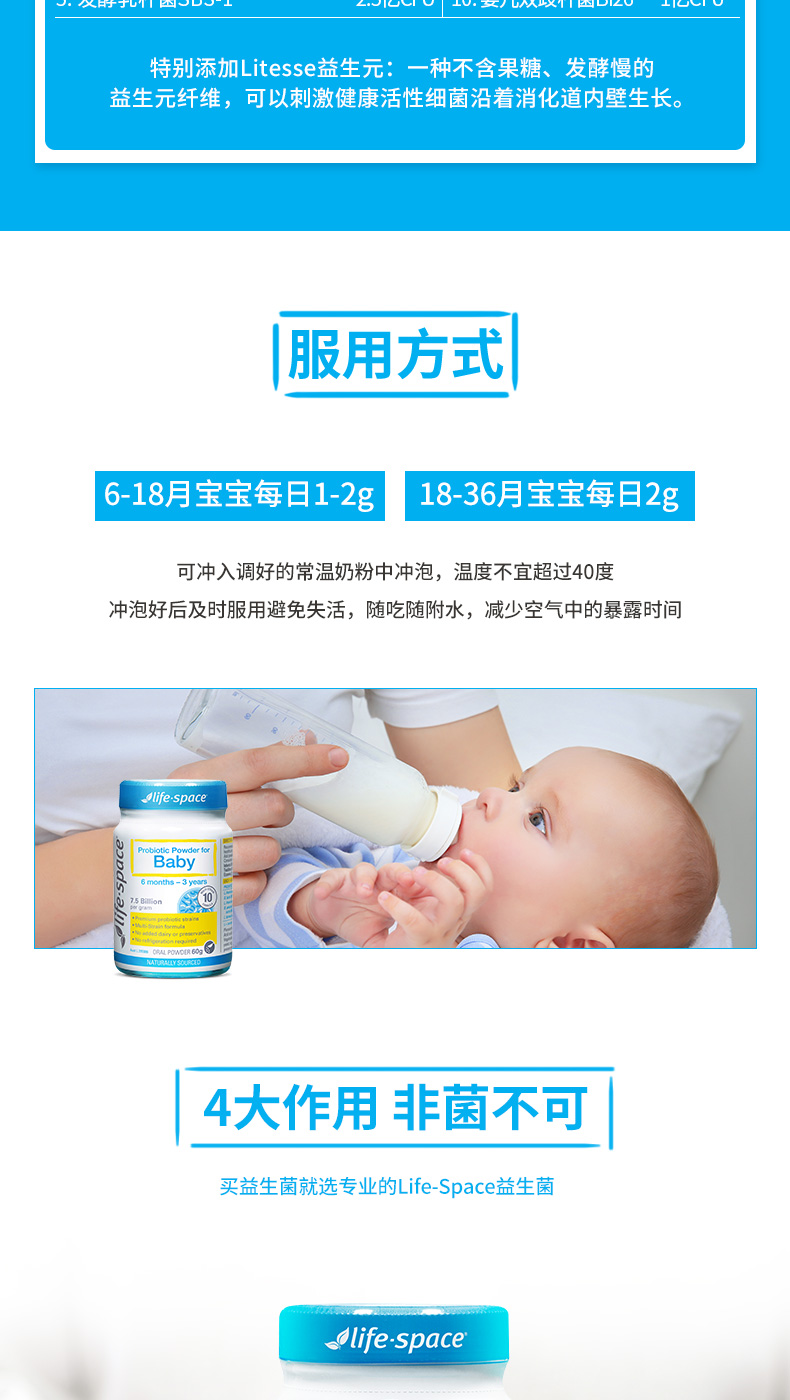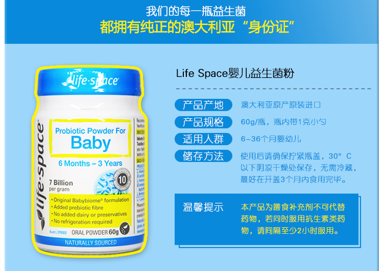 【跨境】LifeSpace婴儿益生菌0至36个月60g(效期2026/8/1)