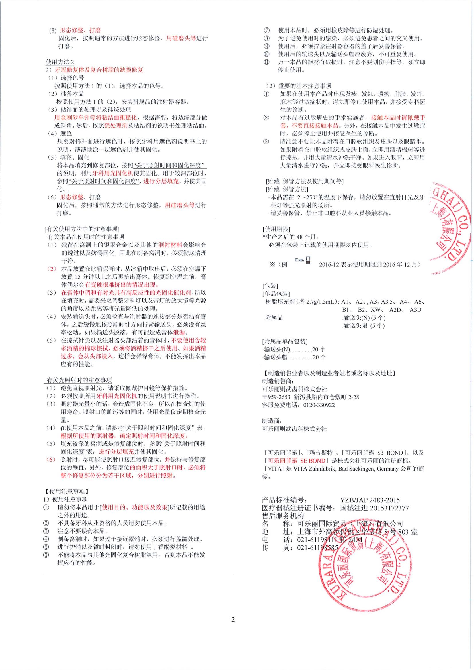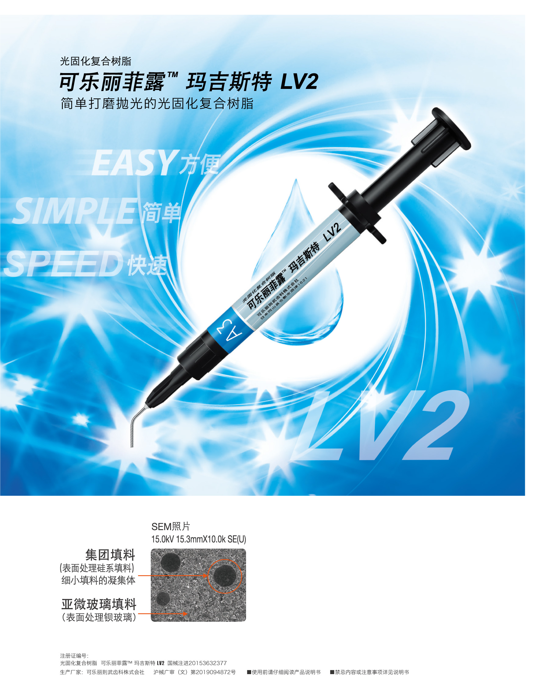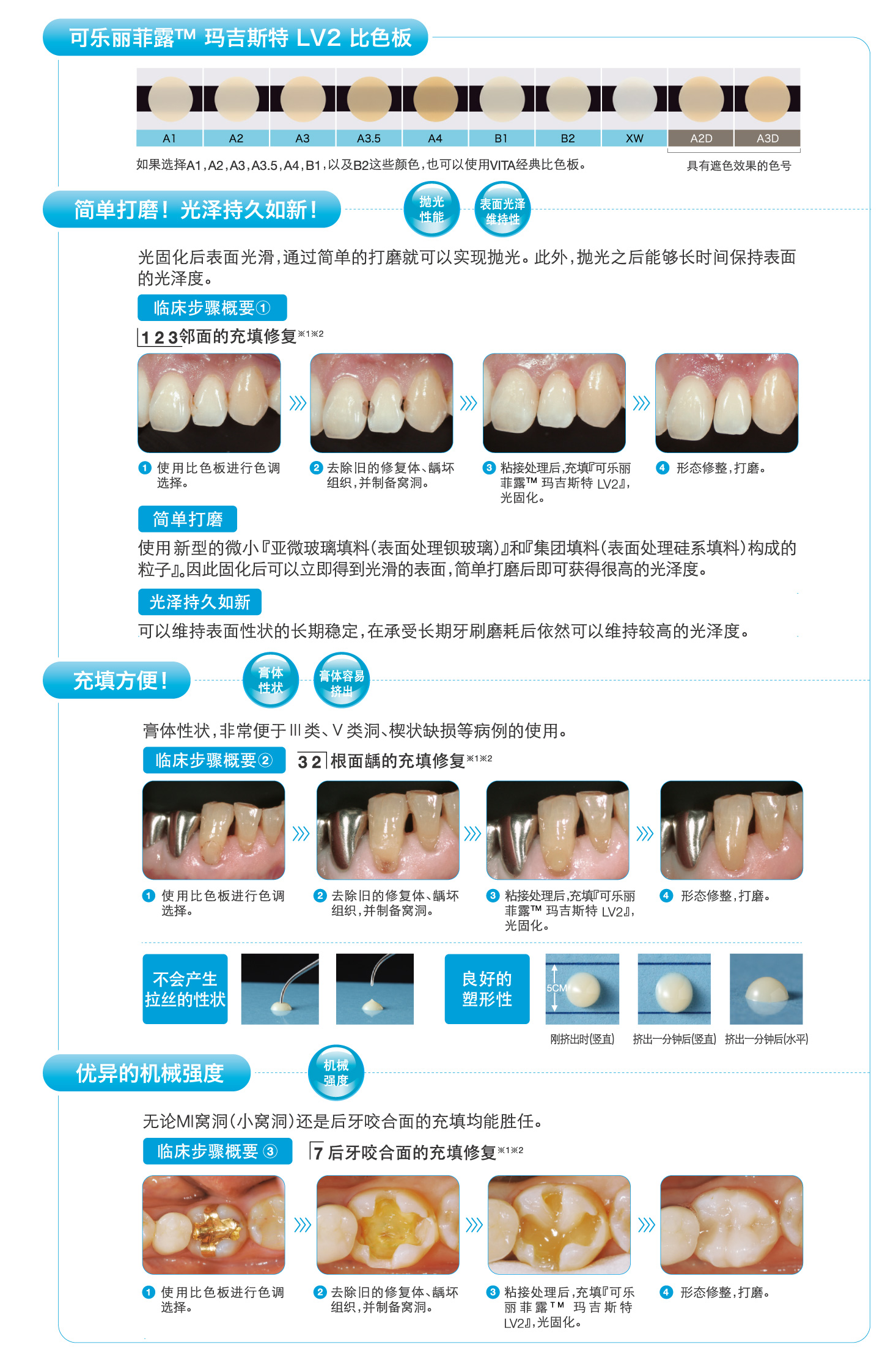 具有应用于前牙和后牙咬合面的强度; 1支即可应用于冻衬到一般充填的各类病例