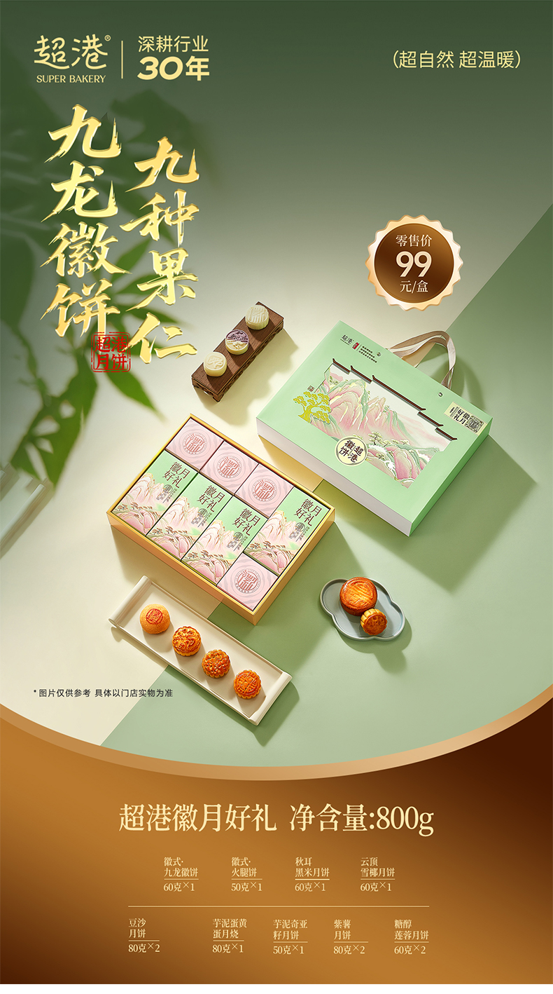超港 徽月好礼800g 中秋月饼礼盒 12饼9味 徽式糕点 送礼优选 72小时发货