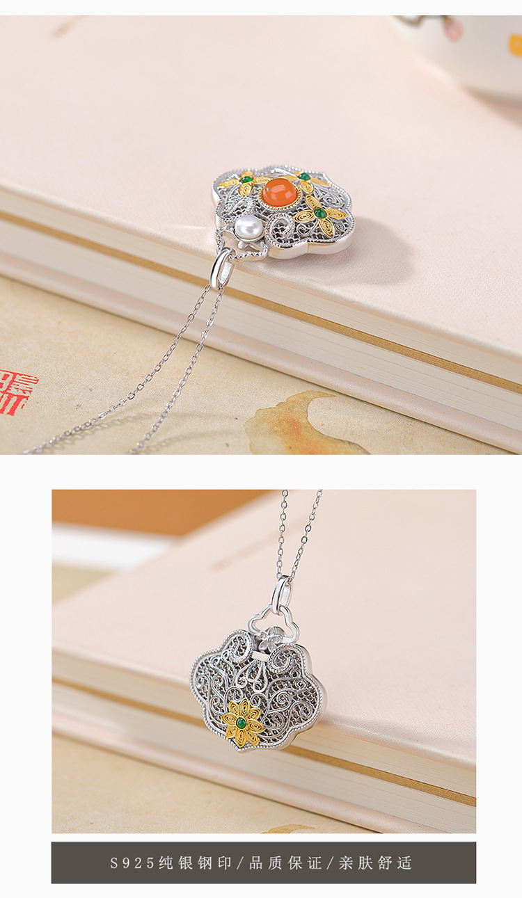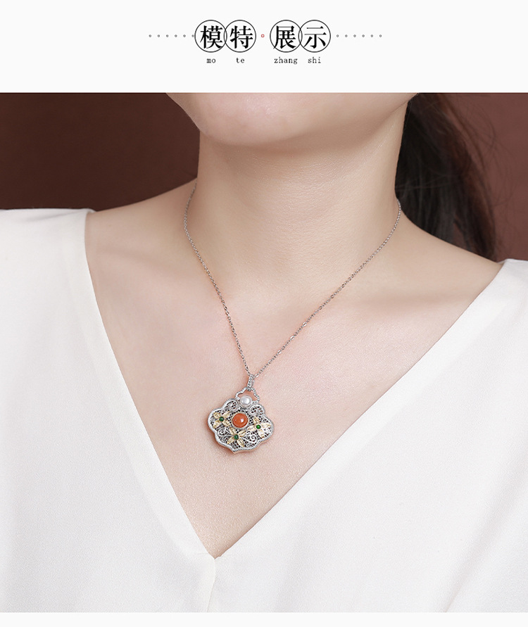 【如意之梦】S925纯银南红水红玛瑙珍珠如意镂空花纹吊坠【CW-DZ06763】