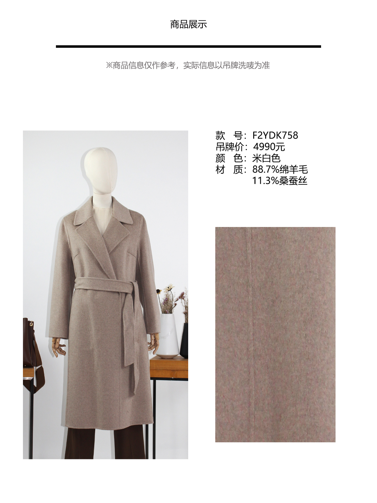 FOCALS福柯斯冬季新款修身长款纯色羊毛双面呢大衣外套F2YDK758MW