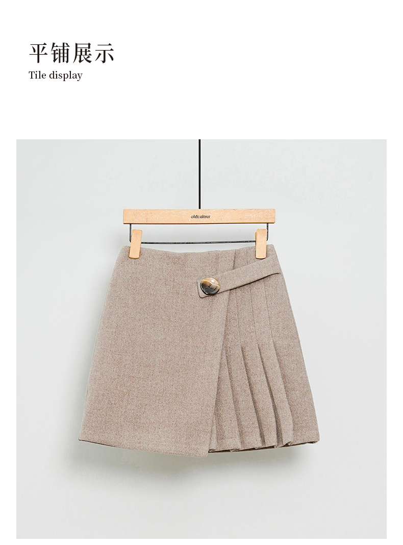 oldcolour半身裙简约时尚高腰显瘦A字百褶短裙女DL43061416
