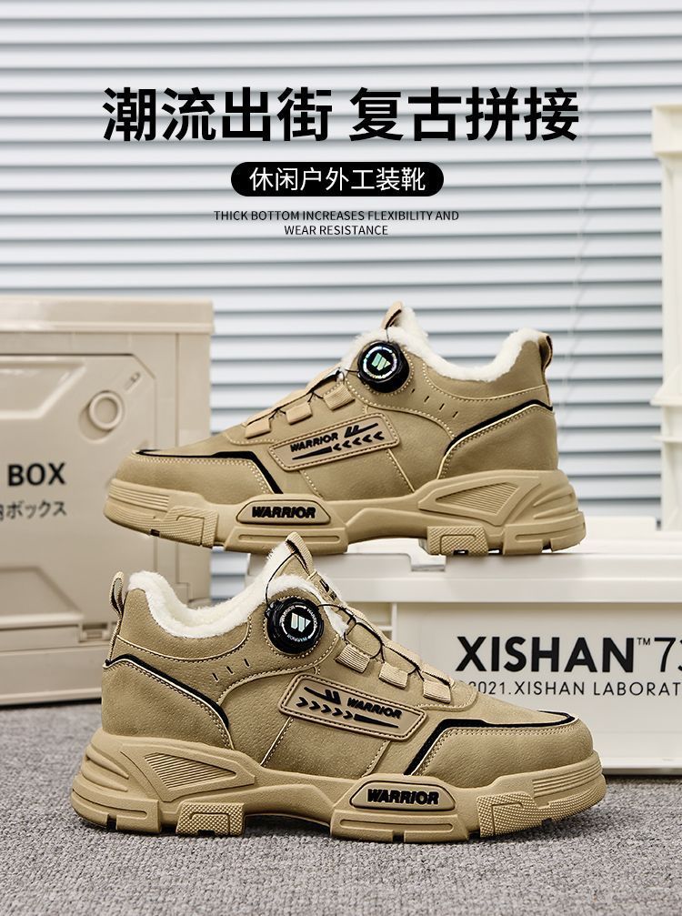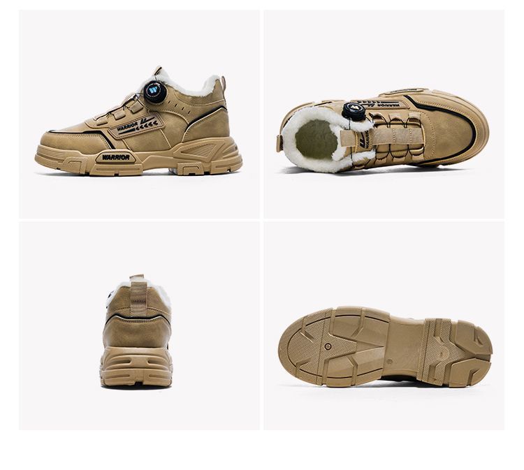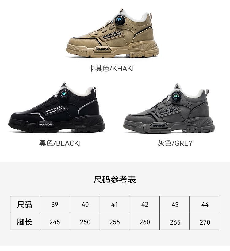 回力男鞋工装鞋2024新款冬季加绒保暖旋钮高帮棉鞋户外登山鞋男款
