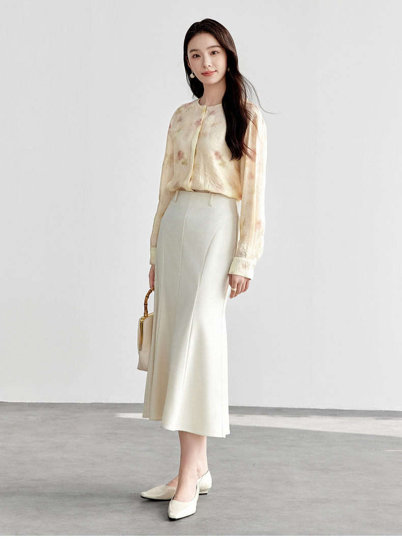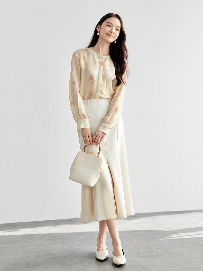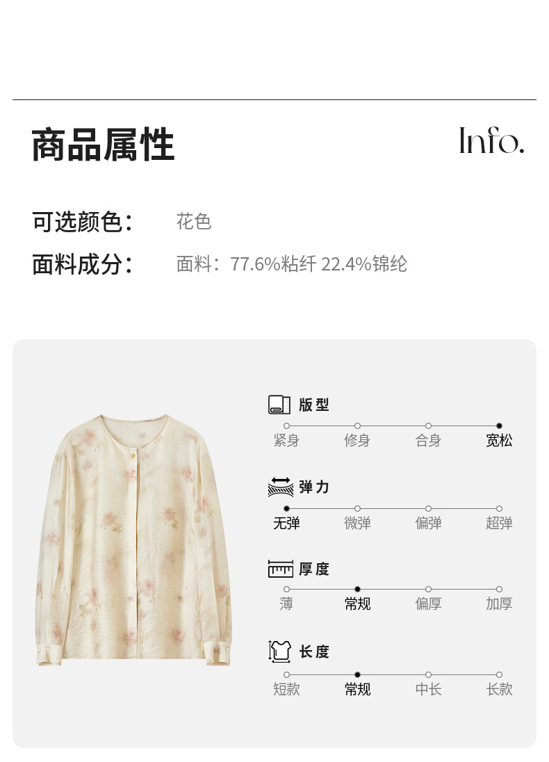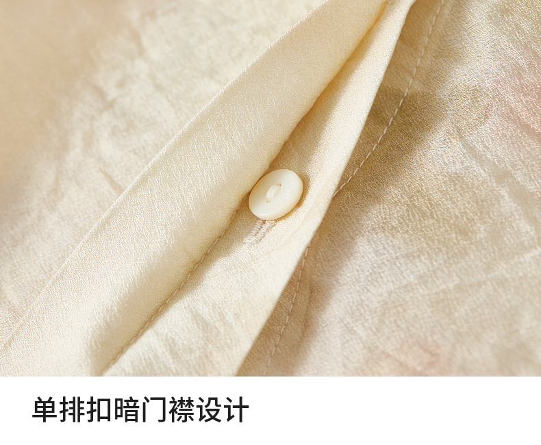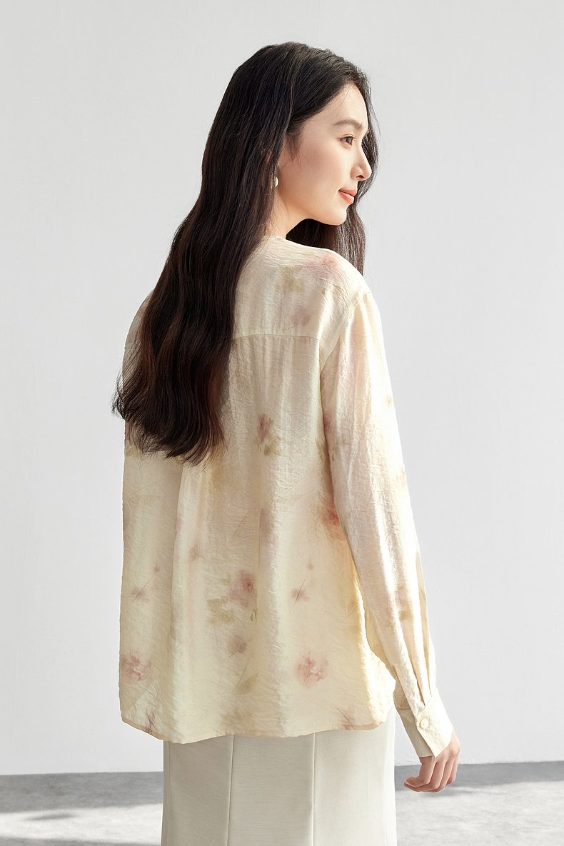 【内购】【轻盈清爽】通勤优雅氛围感圆领暗门襟设计宽松垂感轻氧印花衬衫-151C58032