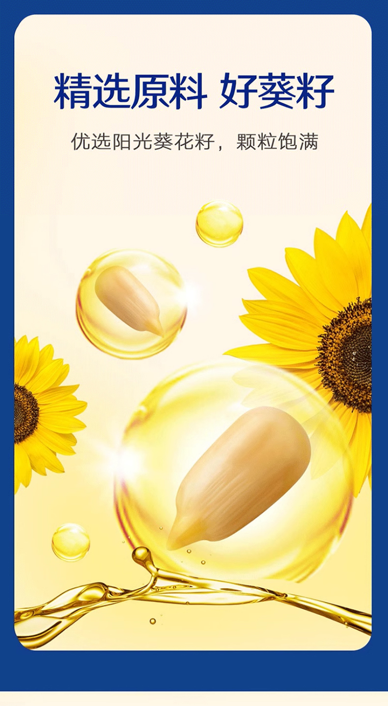 精选原料,先进工艺,物理去壳压榨工艺,充氮保鲜,0反式脂肪酸;