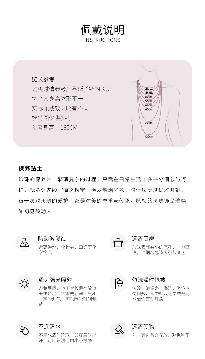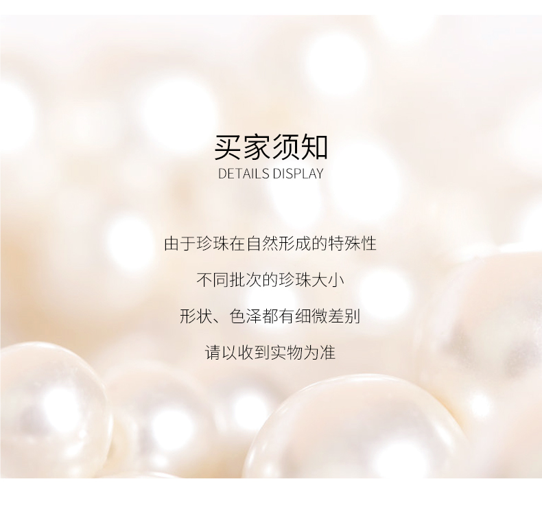 温馨提示:珍珠饰品微微瑕属于正常情况,由于生长环境和过程的各种因素,很难避免会带有一些瑕疵,比如表面不平整、颜色不均,非质量原因,接受7天内退换货,快递运输途中拦截、拒收、个人原因退回,需自行承担退回运费,购买前请了解一下,