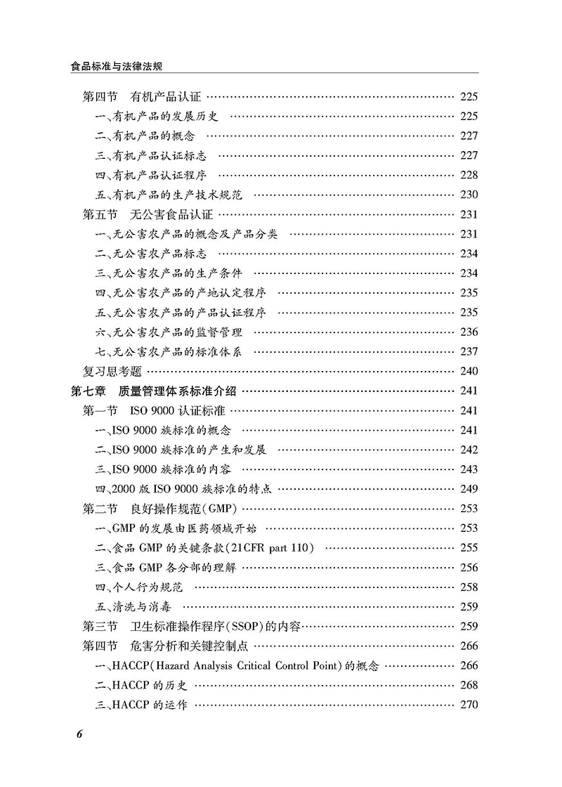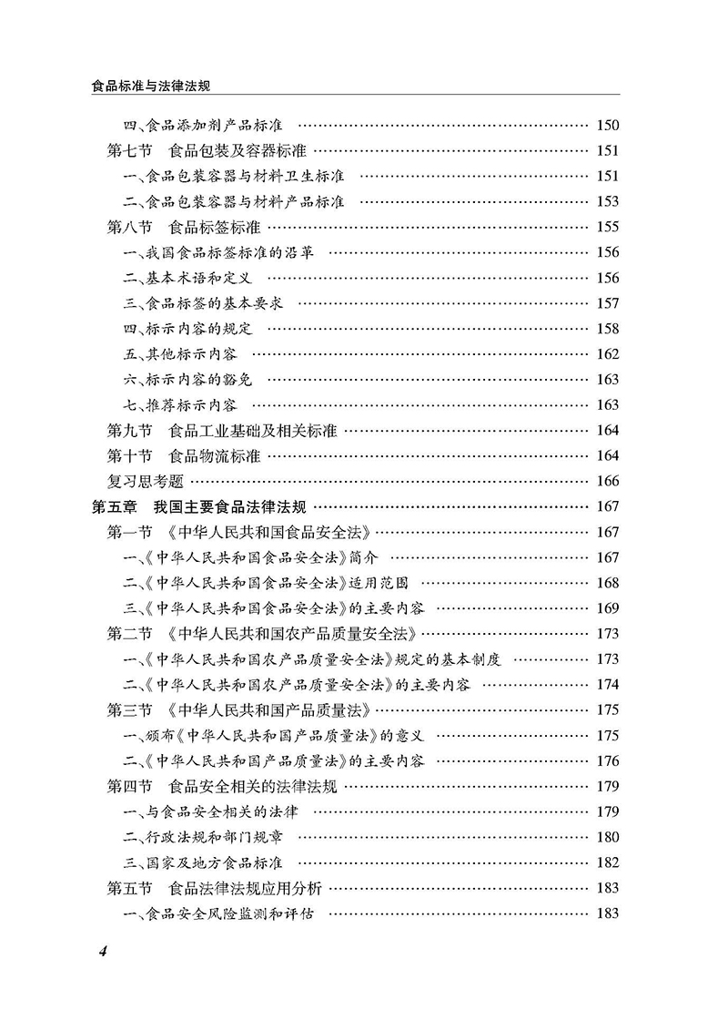 本书重点介绍了食品标准与法律法规的相关知识。全书共分为九章,主要内容包括食品标准基础知识、食品安全与食品法律法规基础知识、主要发达国家食品标准与法律法规、我国食品标准与主要食品法律与法规,同时还介绍了食品生产的市场准入和认证管理、质量管理体系标准以及食品卫生与质量安全监督管理等方面的知识,最后介绍了食品标准与法律法规文献检索方面的知识。本书理论联系实际,深入浅出,重点突出,主次分明,不仅可作为高等院校食品类专业的基本教材,还可供食品相关从业人员参考、学习。