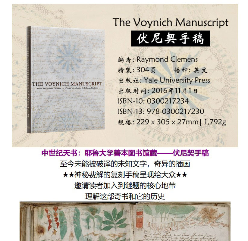 预售 【中商原版】伏尼契手稿 The Voynich Manuscript 英文原版 Raymond Clemens 耶鲁大学善本珍藏 全彩手稿 草本占星药理