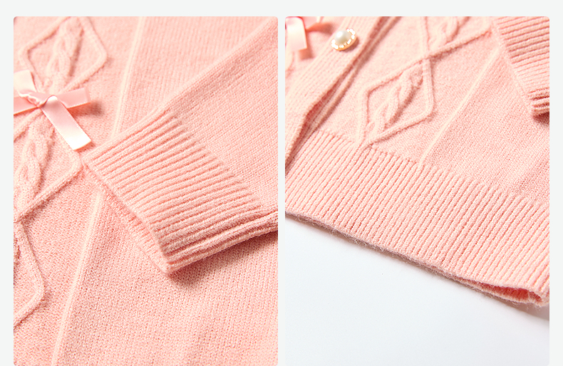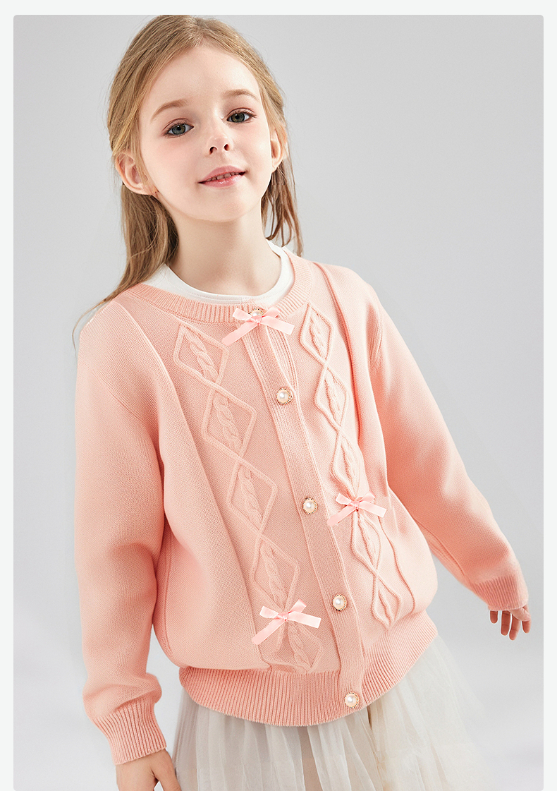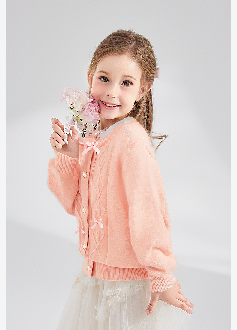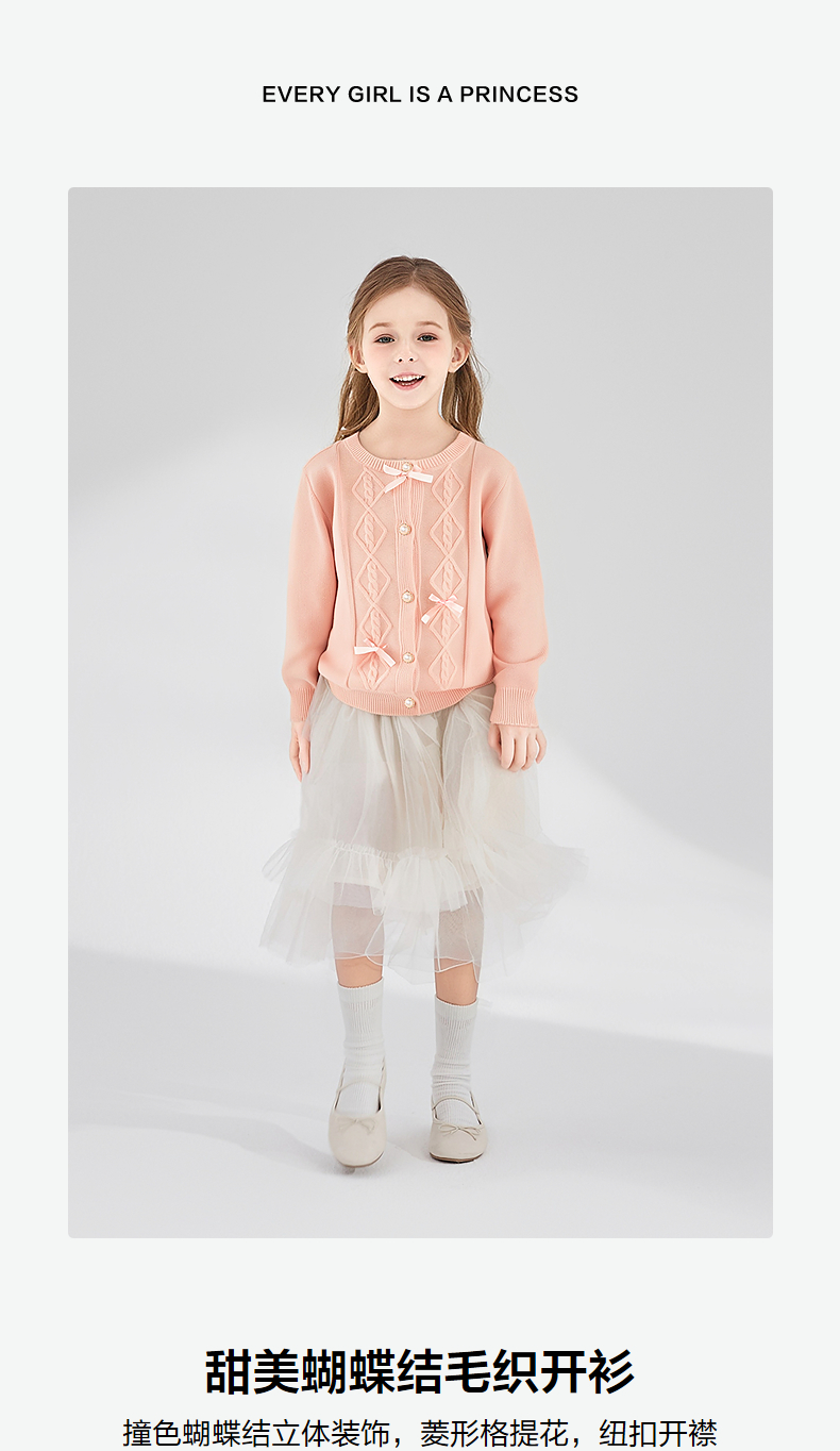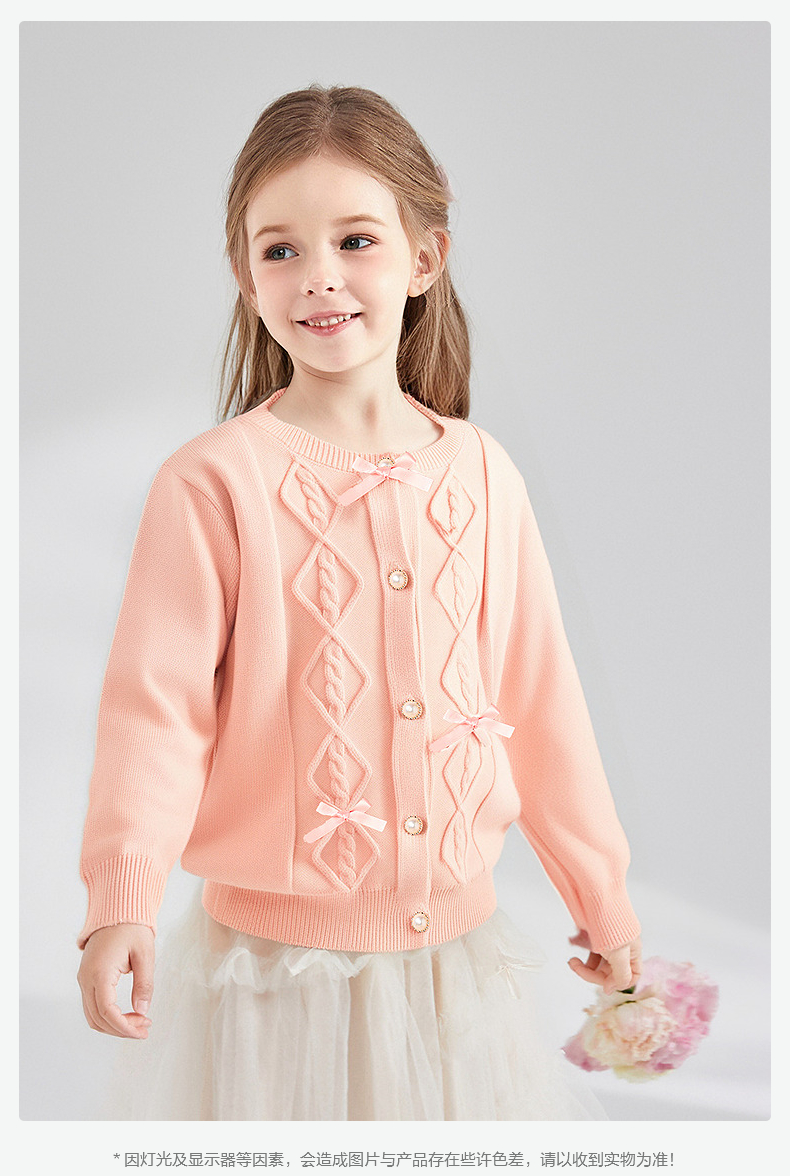 笛莎Deesha 童装女童外套2025秋新款女童甜美蝴蝶结毛织开衫