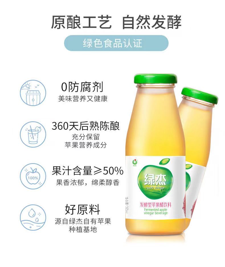 绿杰发酵型苹果醋玻璃瓶260ml