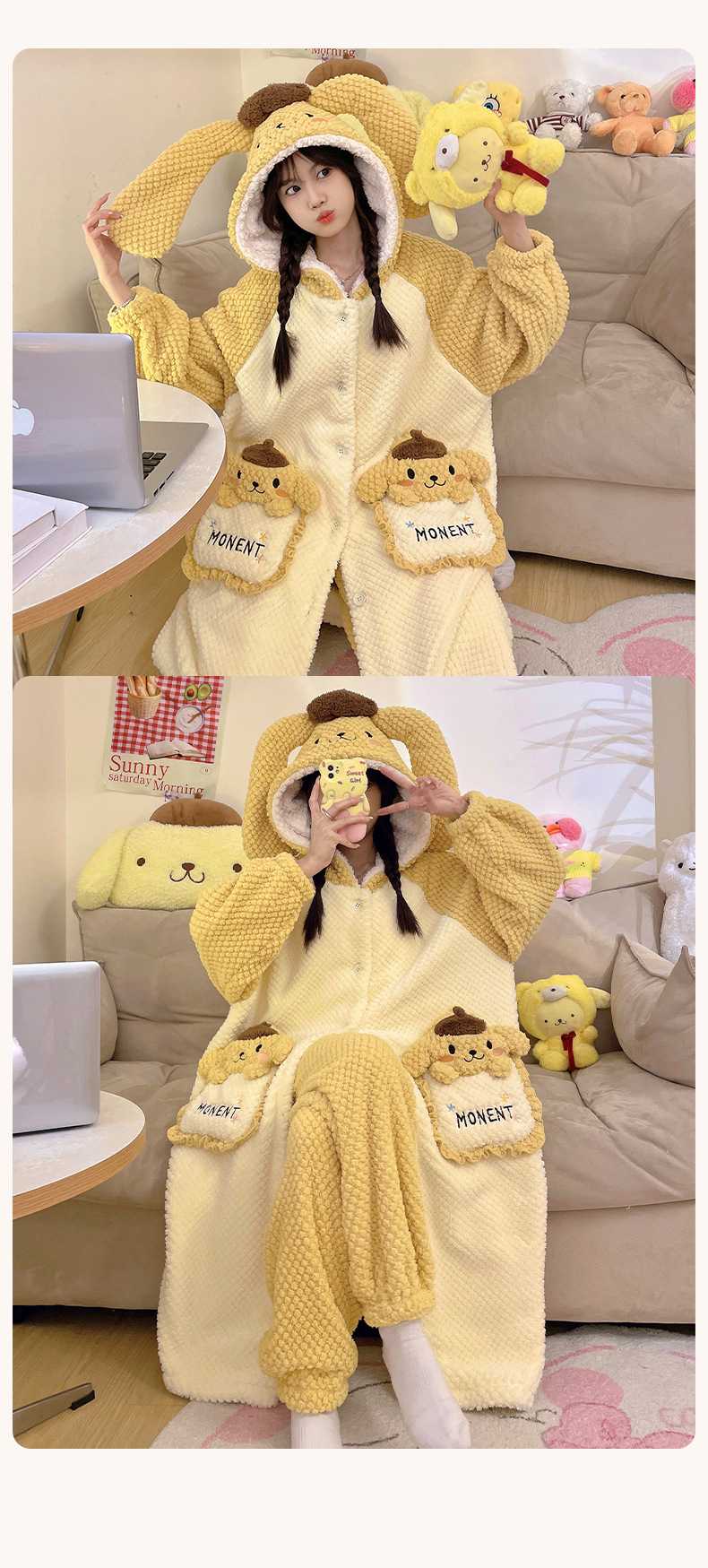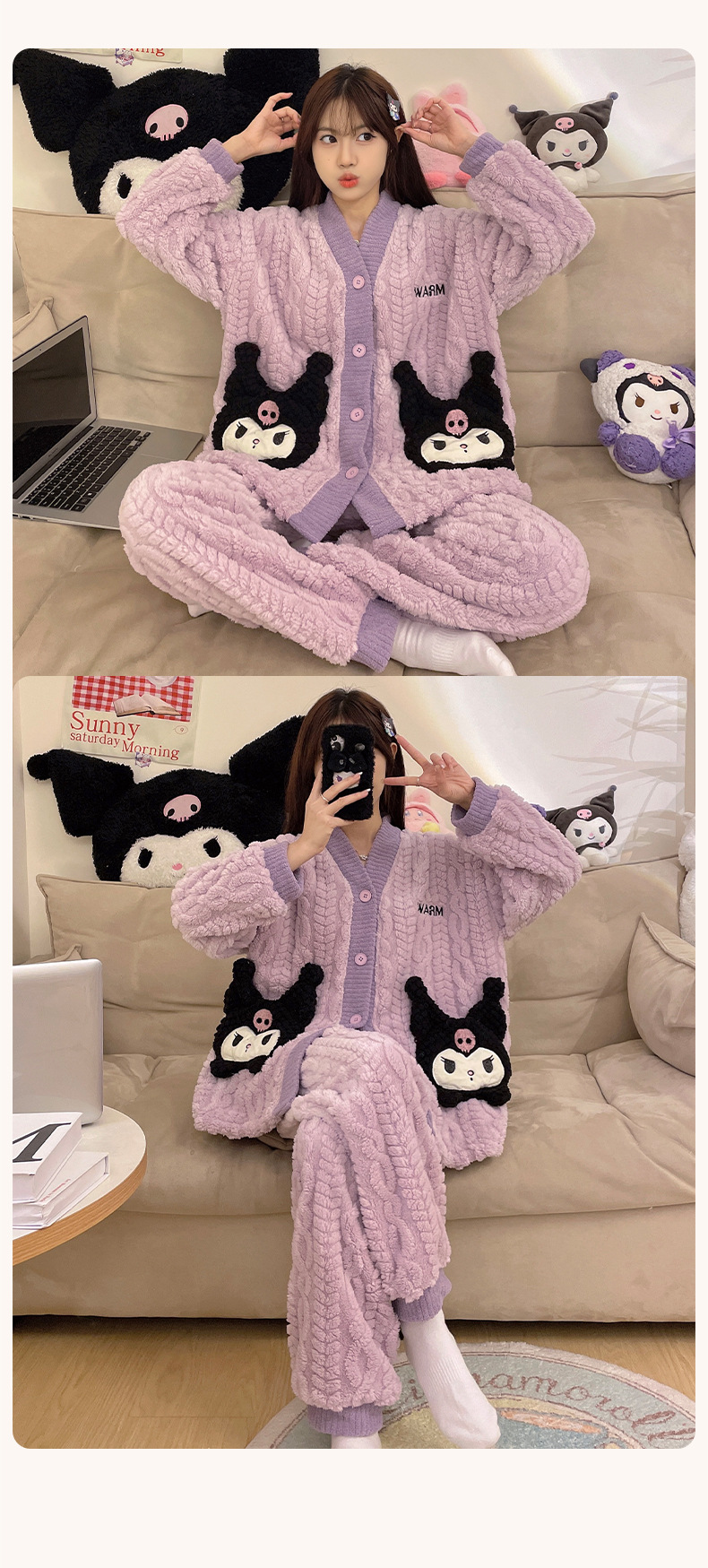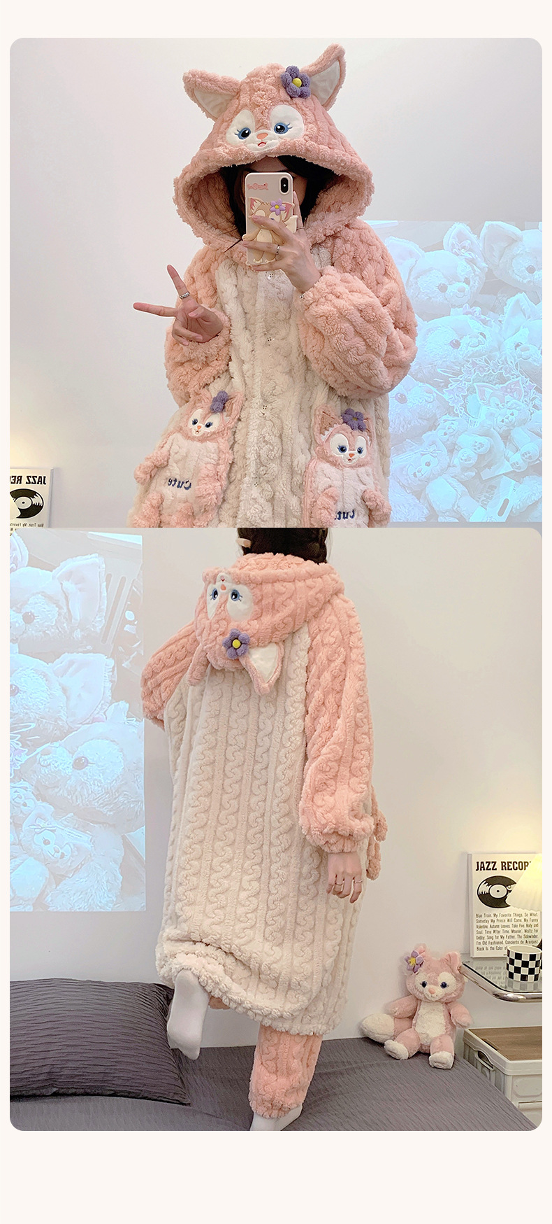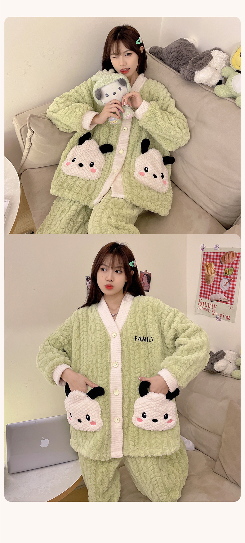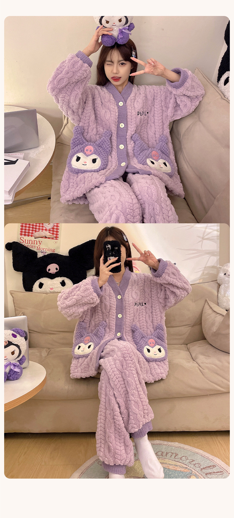 冬季新款【睡衣女珊瑚绒】卡通可爱娃娃领 秋冬天加厚加绒保暖法兰绒家居服套装