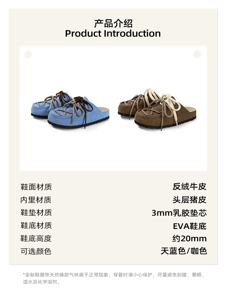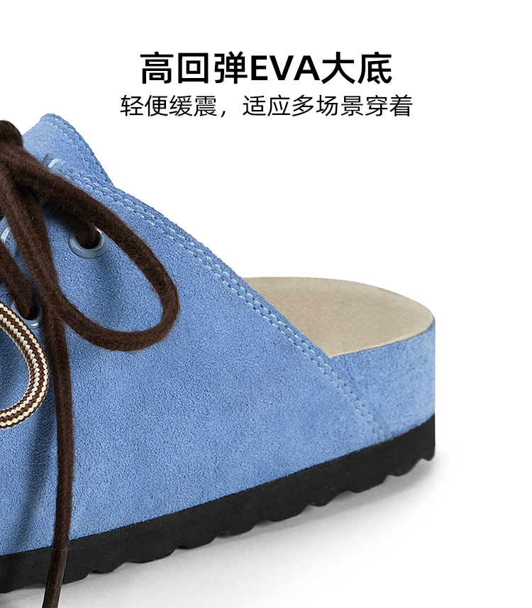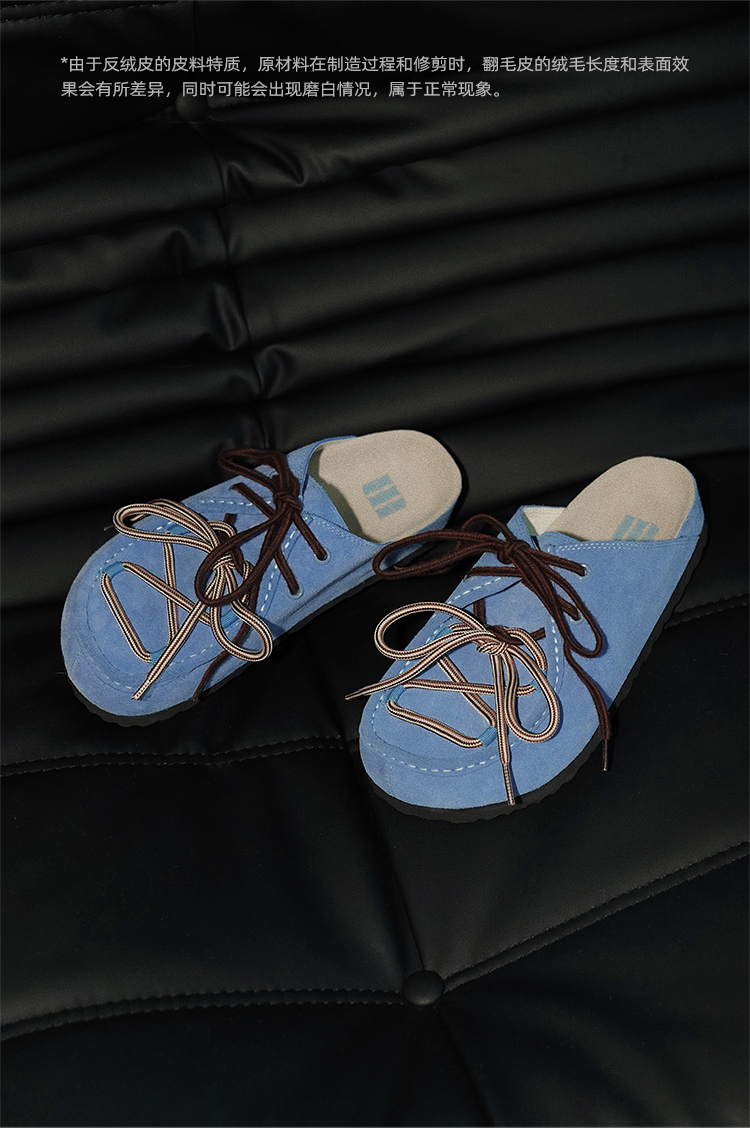 对面duimian-春夏新品袋鼠鞋棕色/牛仔蓝勃肯半拖