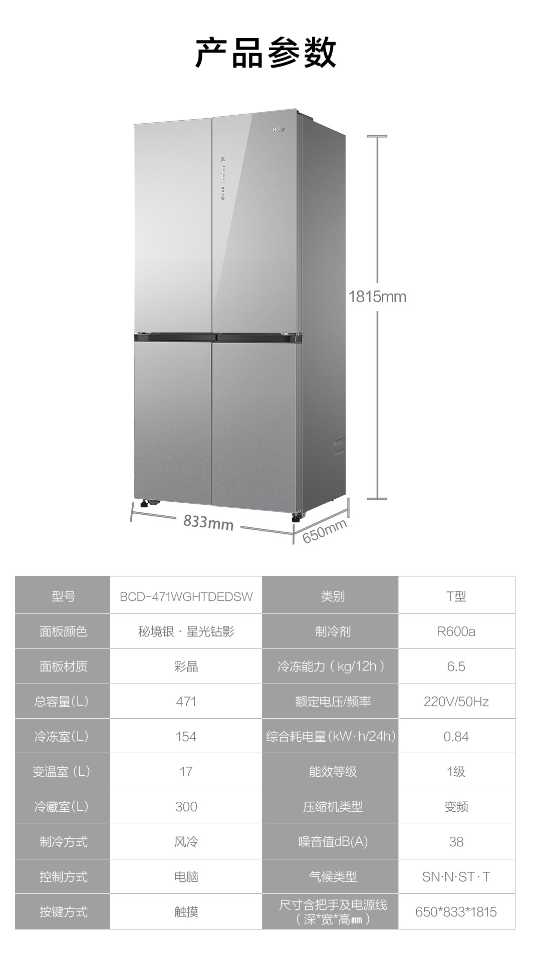 海尔(Haier)冰箱 BCD-471WGHTDEDSW