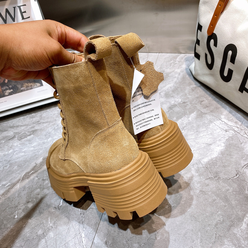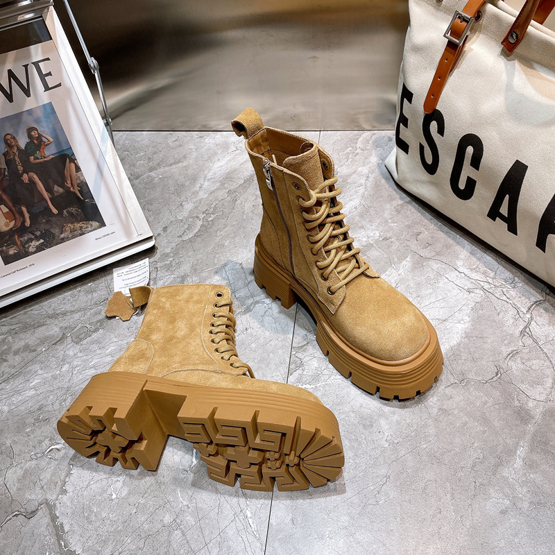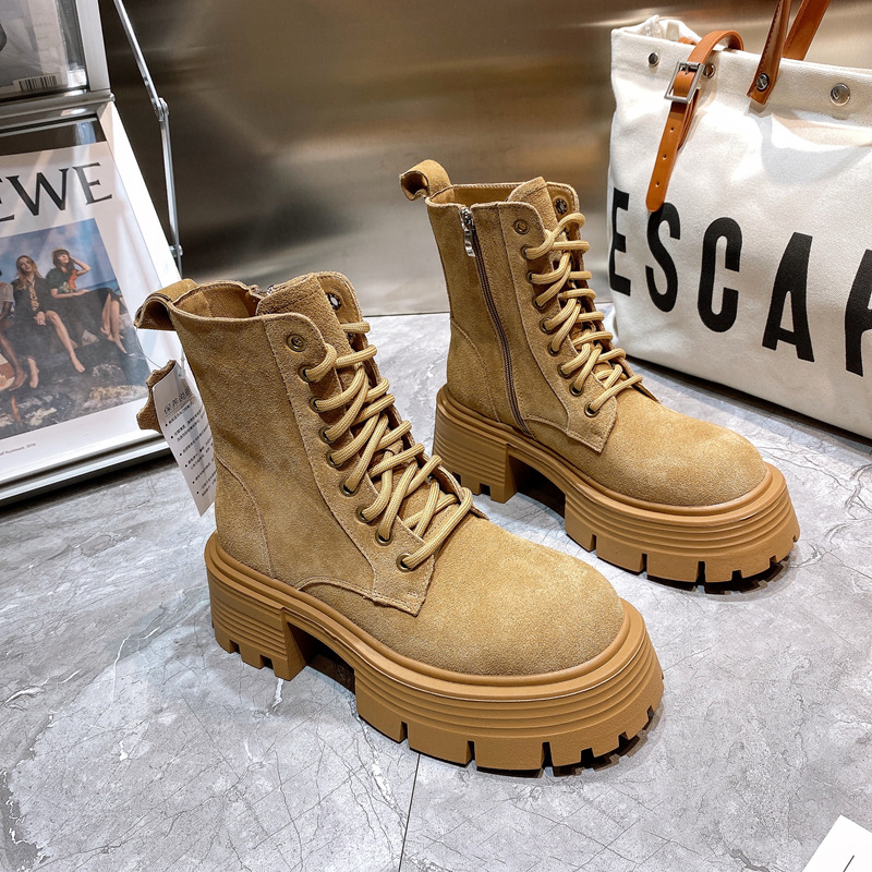 【服饰鞋包】Luji小个子厚底马丁靴女鞋2022年秋季新款英伦风短筒大黄靴潮