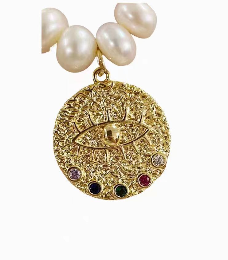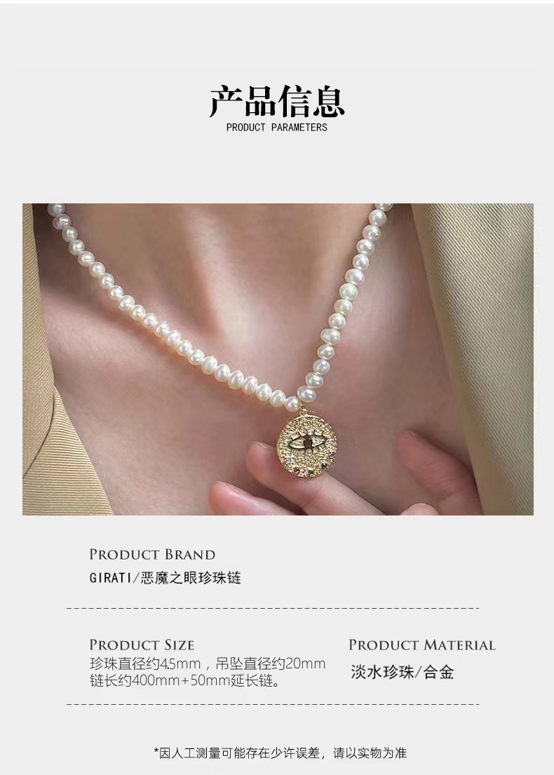 25年秋冬流行色 白*何同款 意大利GIRATI为爱 智慧(恶魔)之眼纯天然淡水珍珠水晶项链
