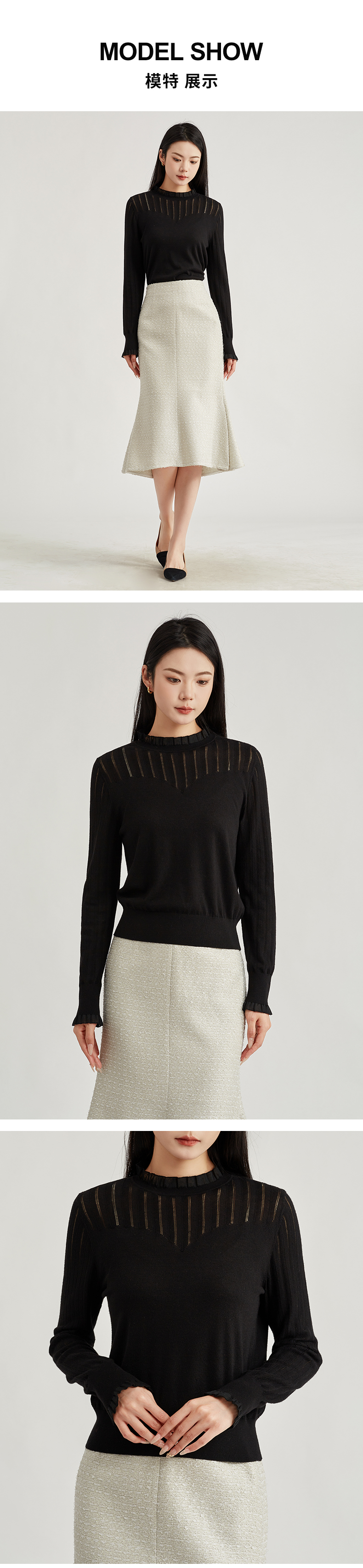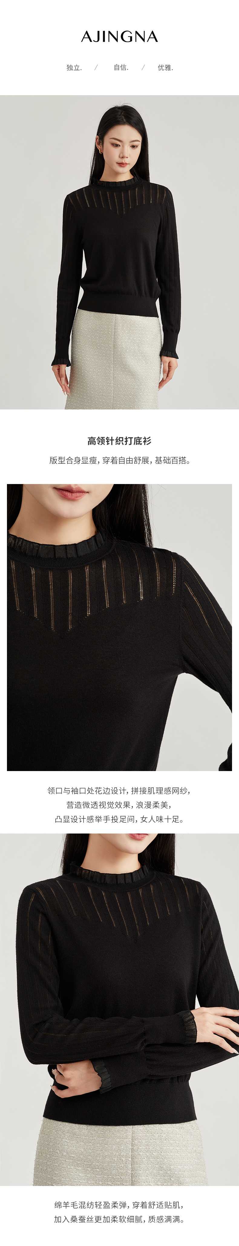 【商场同款】阿菁娜肌理感微透高领针织打底A28Q301011