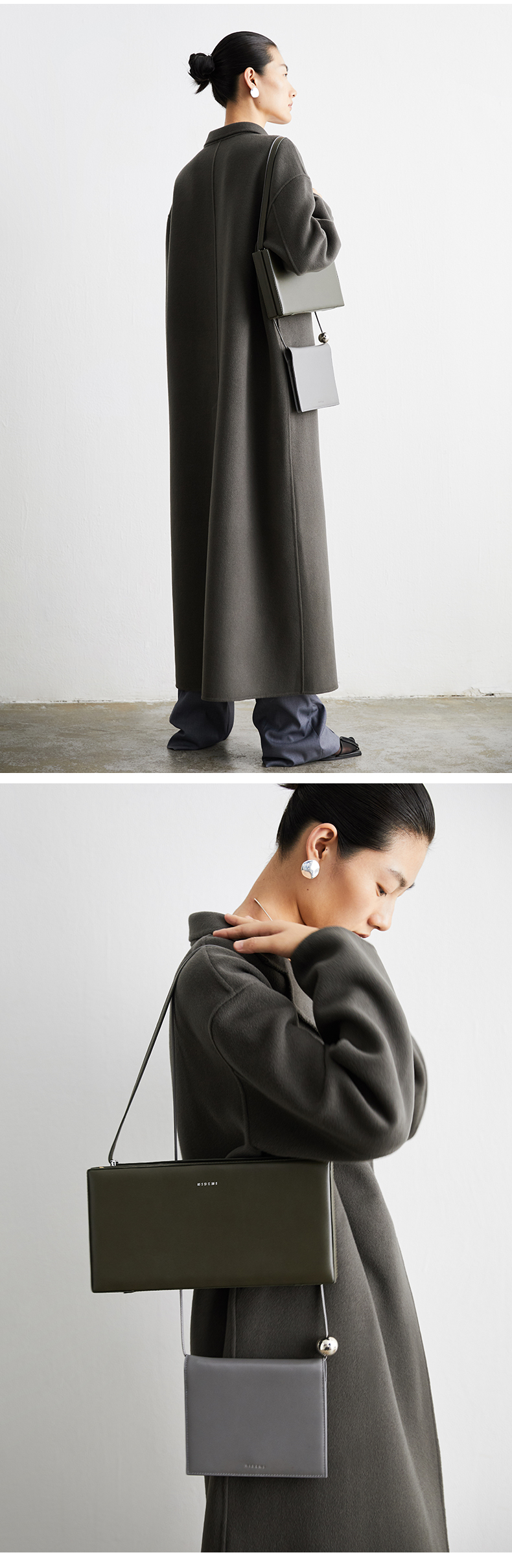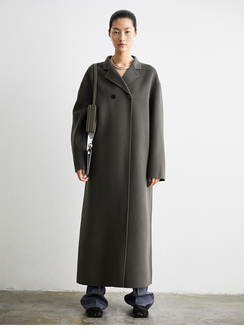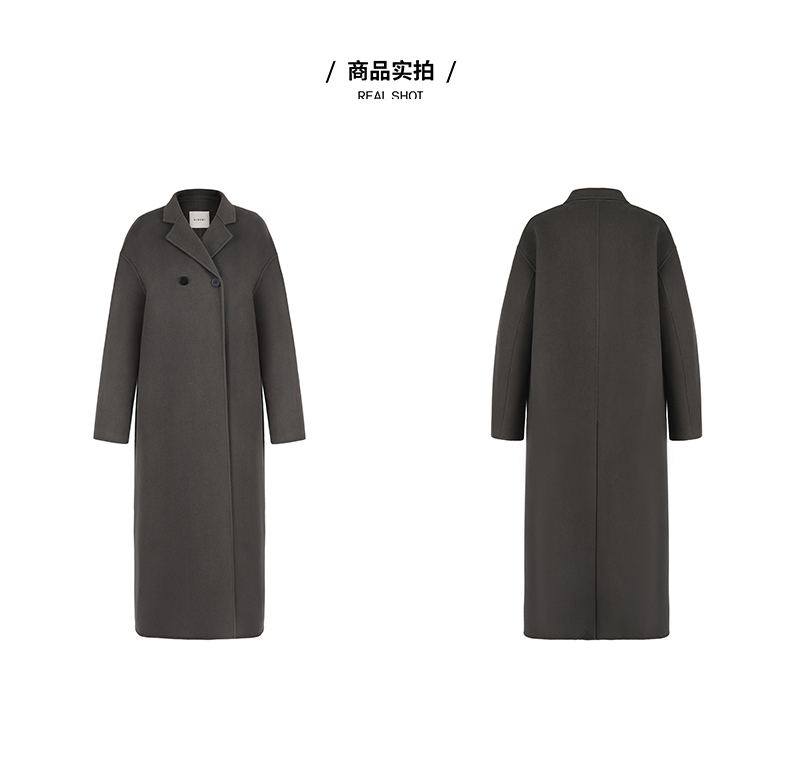 HIDEMI 深灰铜绿两粒扣简约设计感羊毛大衣