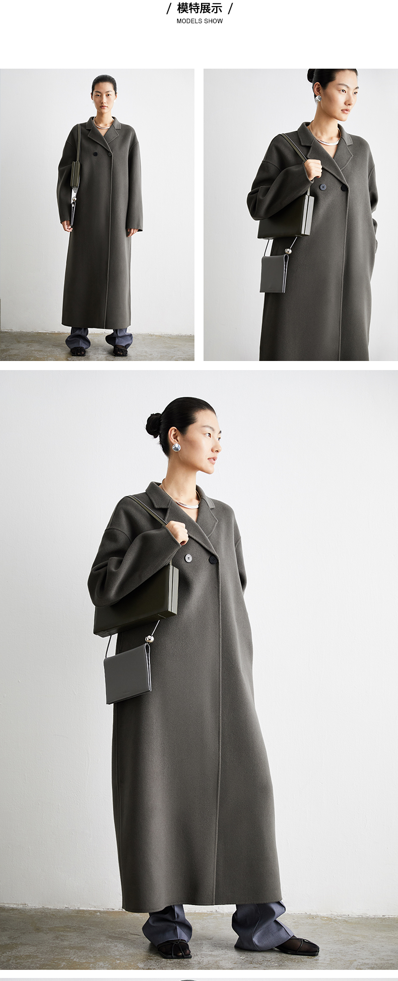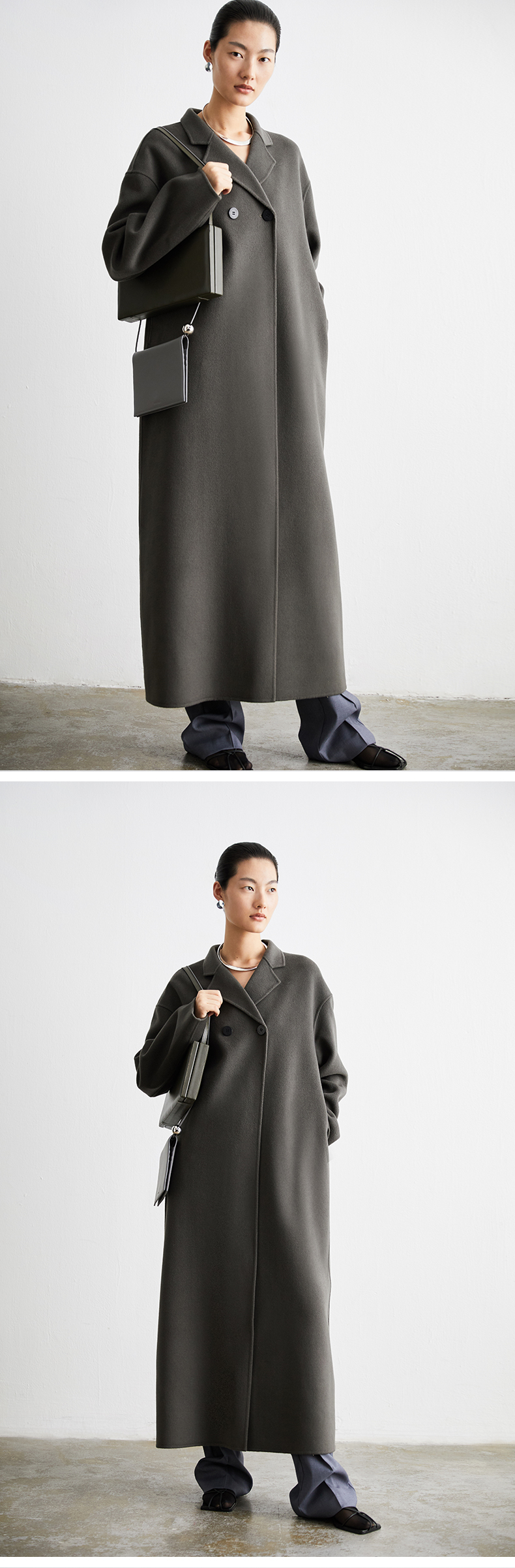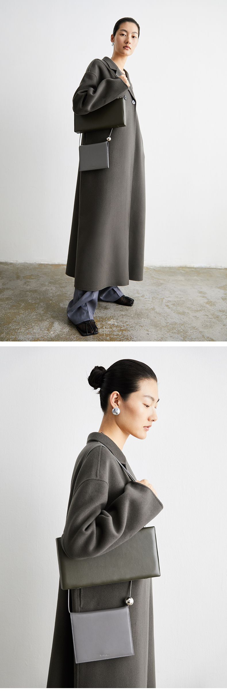 HIDEMI 深灰铜绿两粒扣简约设计感羊毛大衣