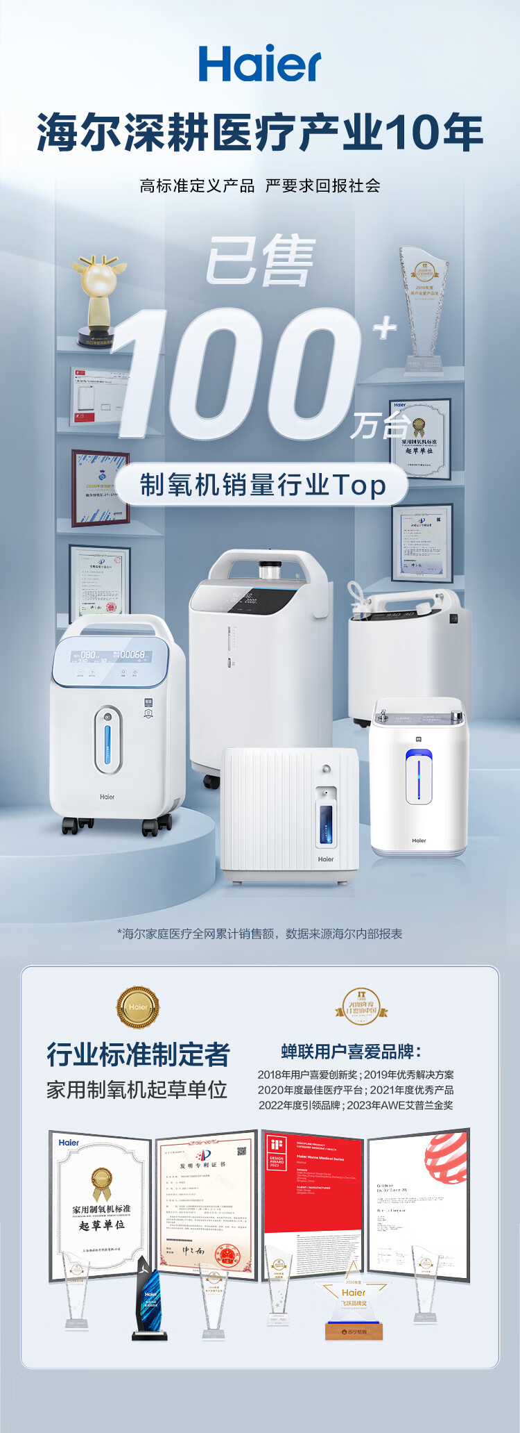 海尔(Haier)3L升制氧机医用级便携式家庭用制氧雾化一体机老人孕妇吸氧机高原随身小型制氧气仪器HYY-Z306W