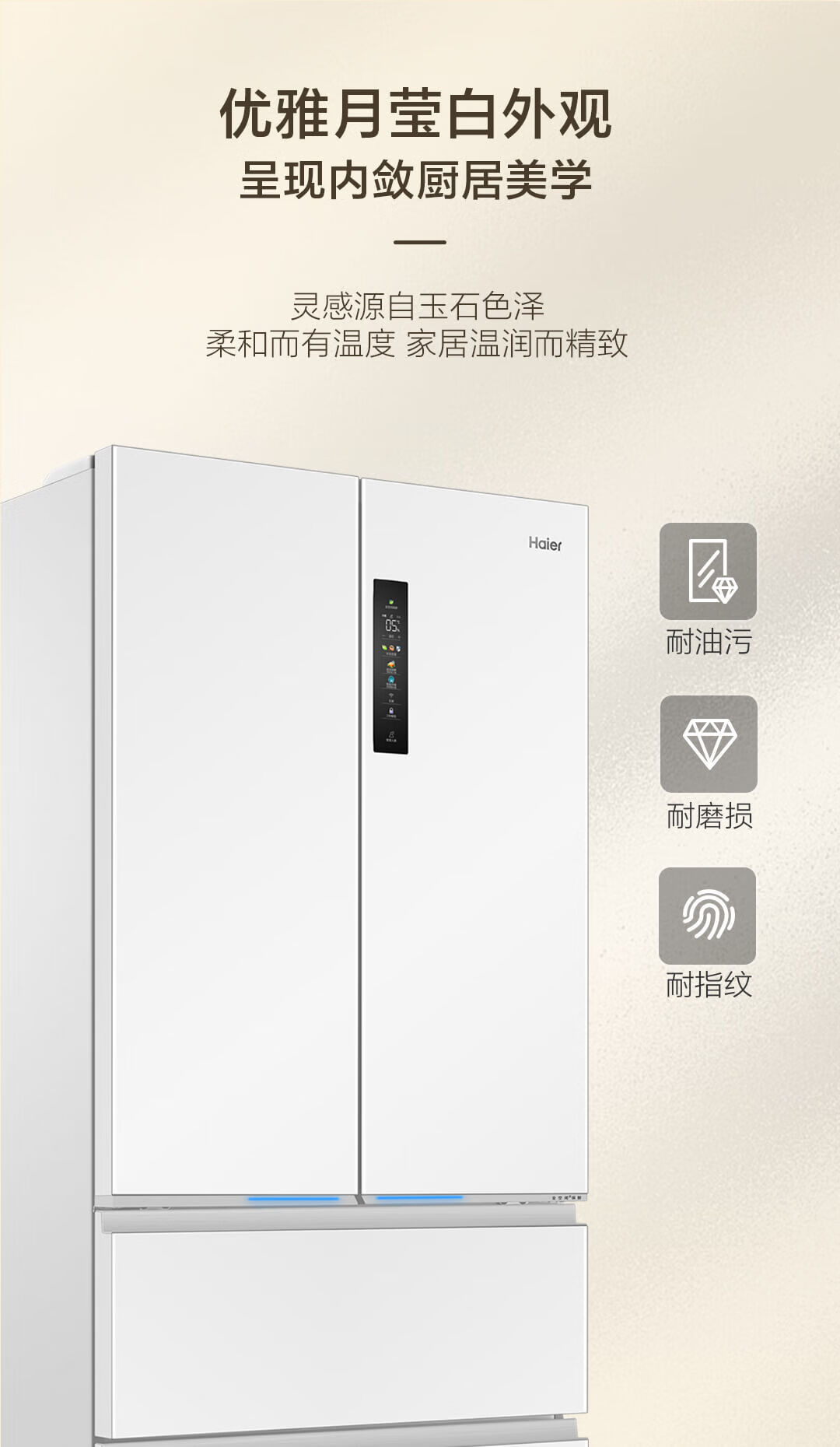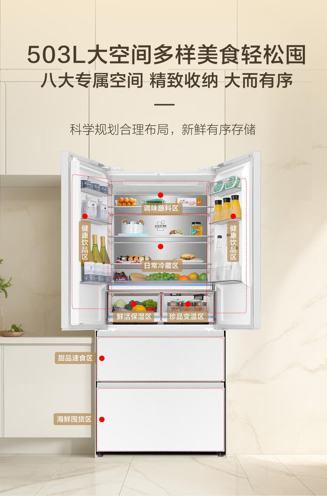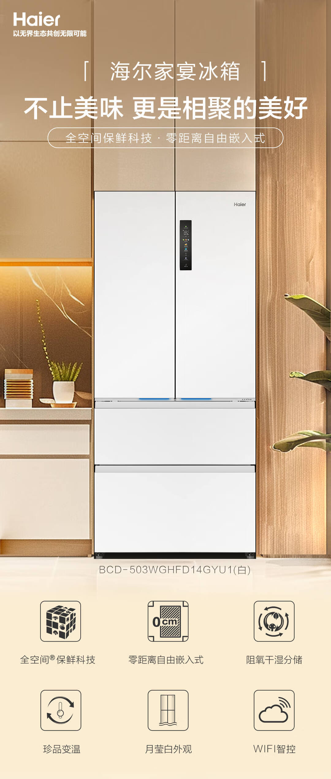 海尔(Haier)海尔503L小红花零嵌全空间保鲜超薄冰箱多门四开门法式EPP超净底部散热家用电冰箱 BCD-503WGHFD14GYU1(白)