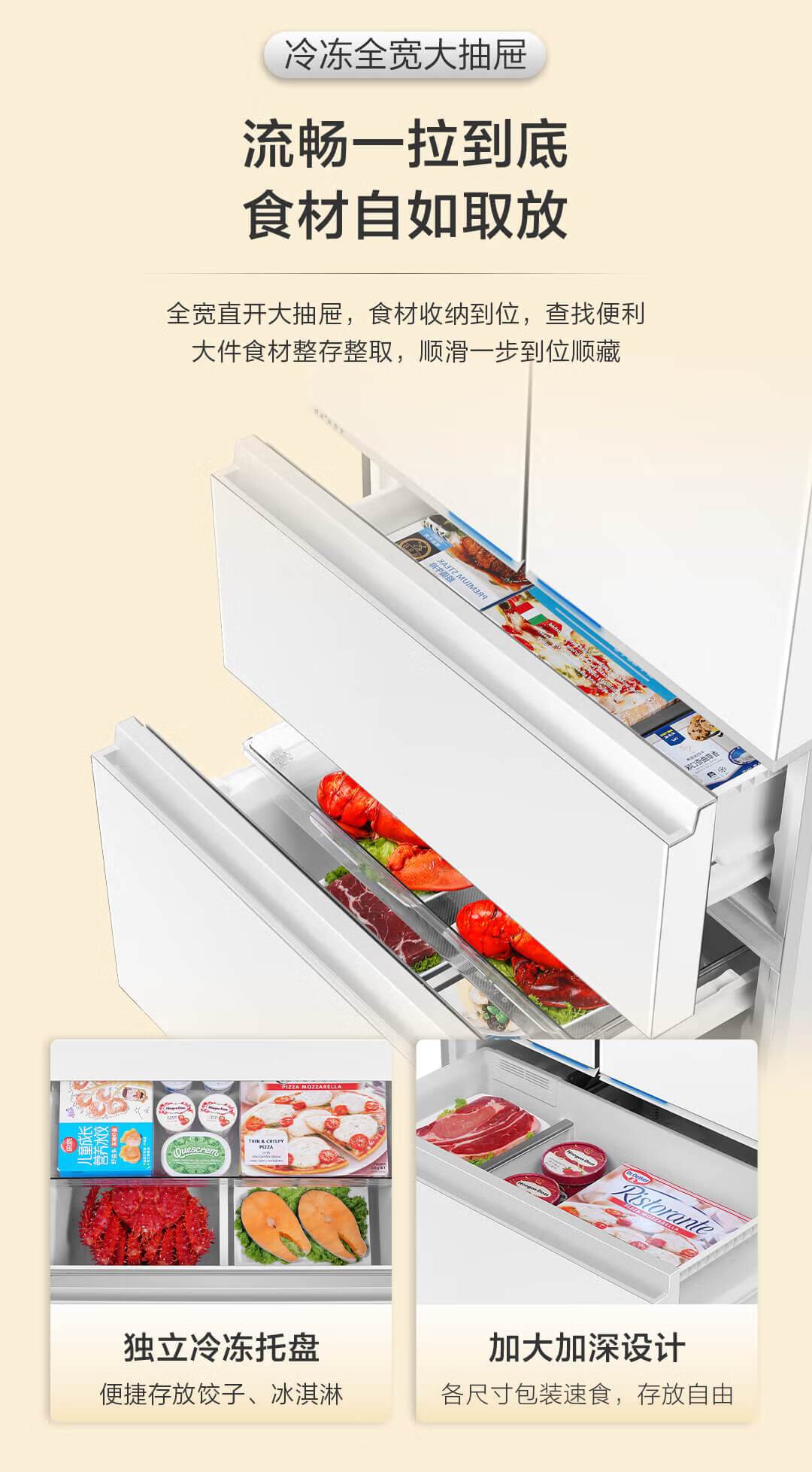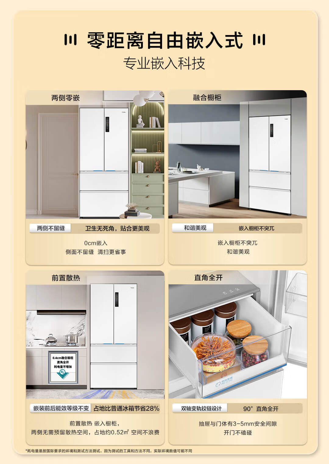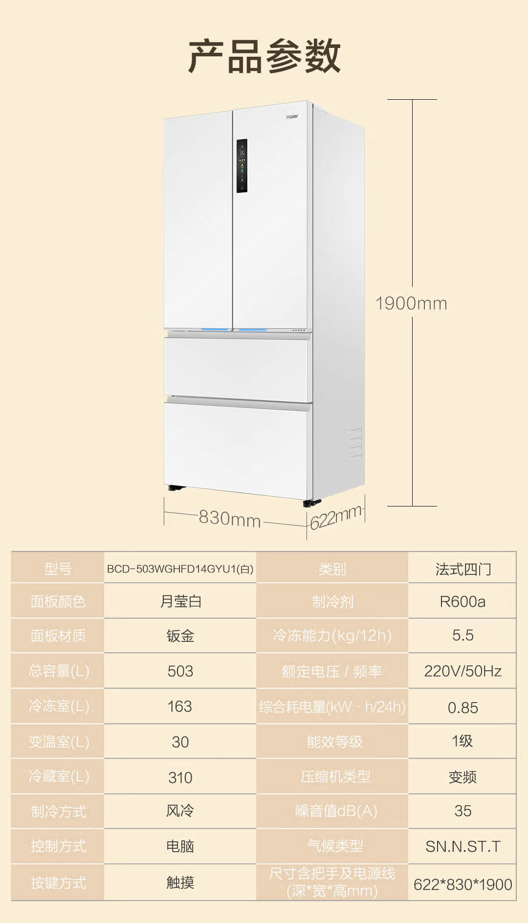 海尔(Haier)海尔503L小红花零嵌全空间保鲜超薄冰箱多门四开门法式EPP超净底部散热家用电冰箱 BCD-503WGHFD14GYU1(白)