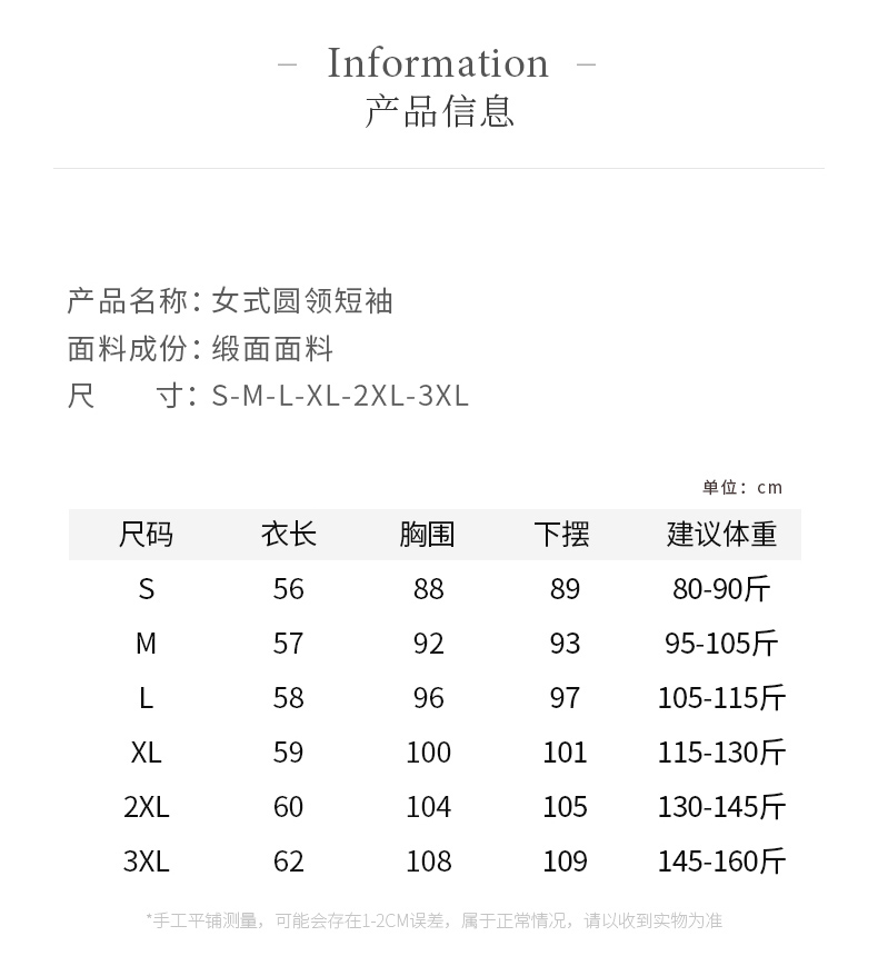 【产品名称】:SIIJJEYY夏季新款女士仿真丝面小圆领短袖