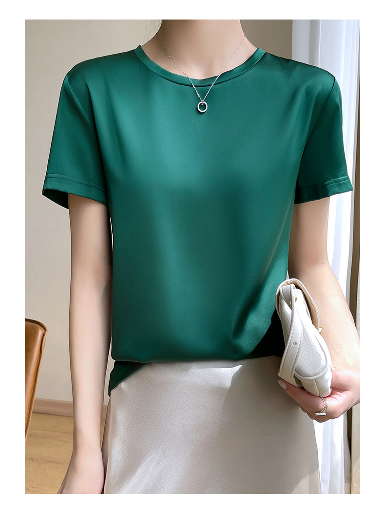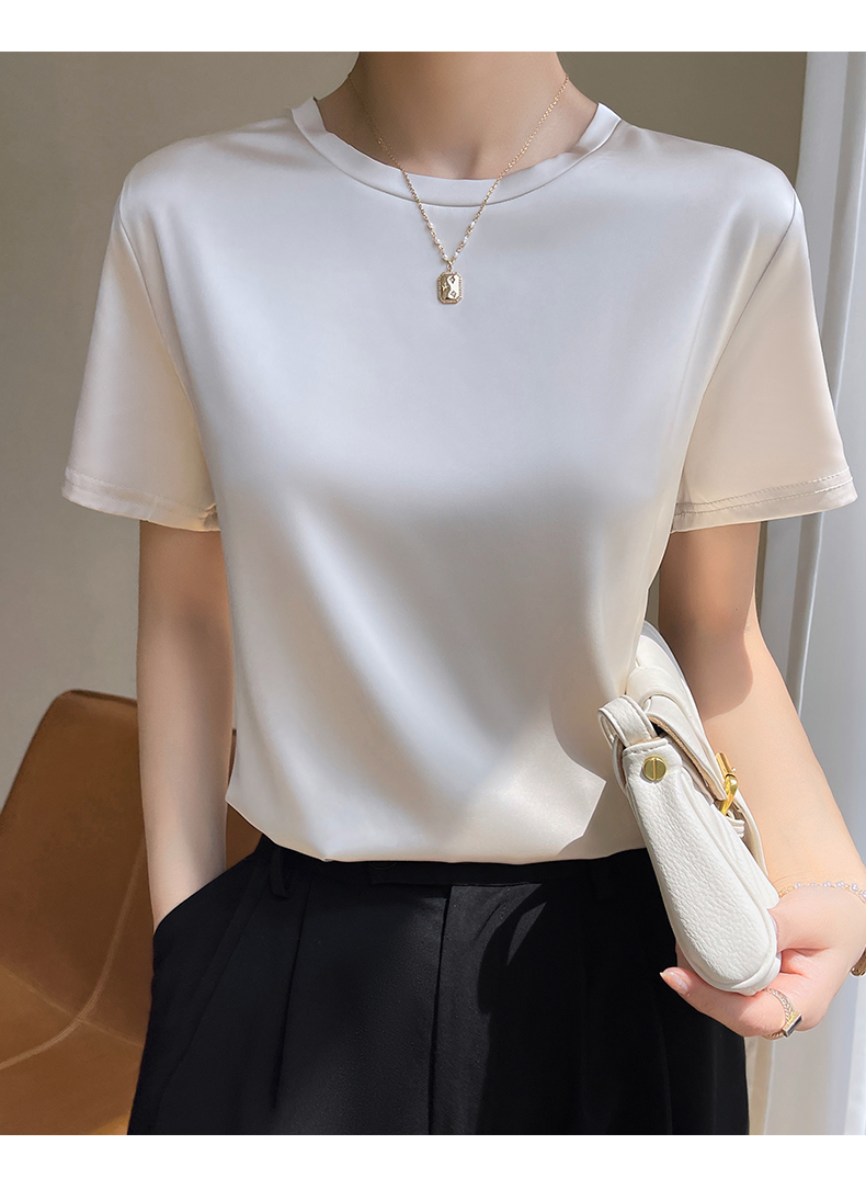【经典百搭触感丝滑】SIIJJEYY枝辑夏季女士仿真丝面小圆领短袖 (7色可选)
