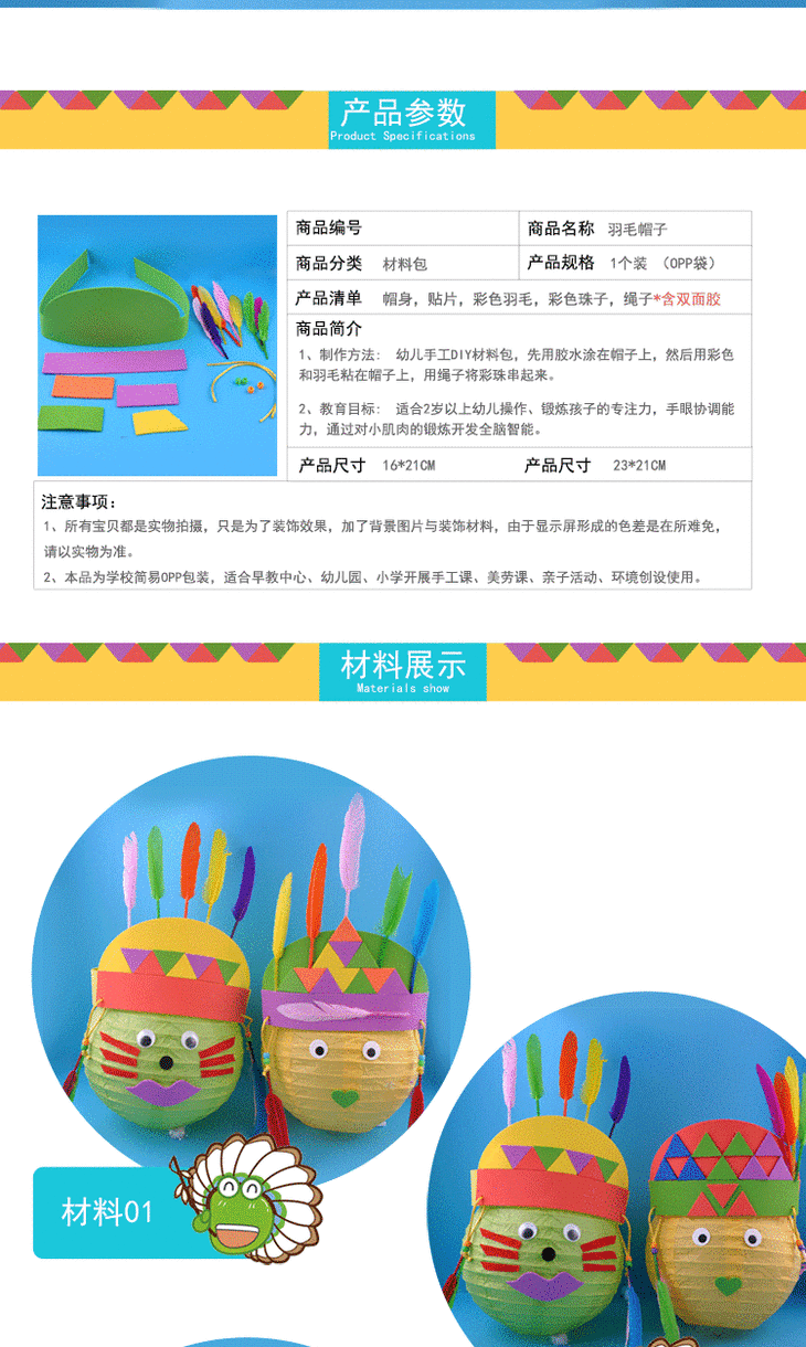 幼儿园课堂手工DIY创意手工,装扮羽毛帽材料包