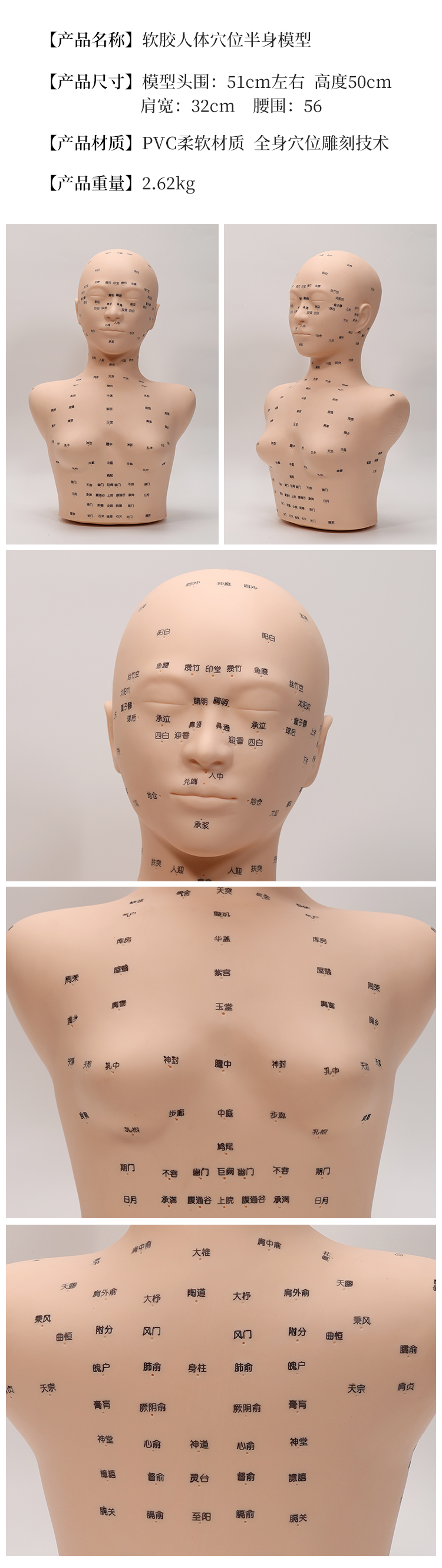 软胶人体穴位半身模型