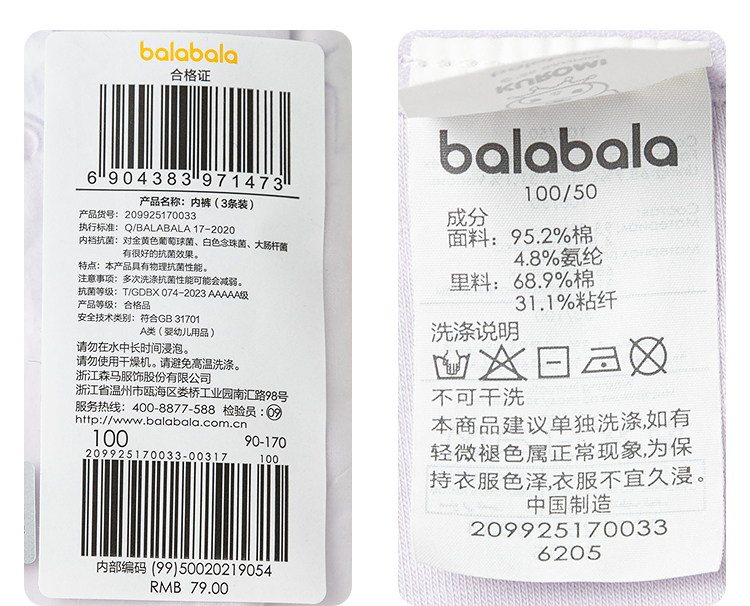 【库洛米IP】巴拉巴拉女童内裤棉小大童三角短裤抗菌不夹P三条装